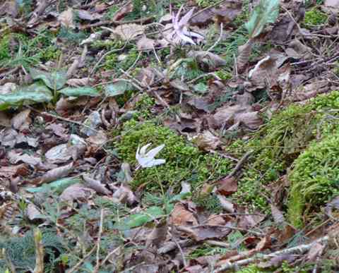 写真は稀にみる白いカタクリの花です。