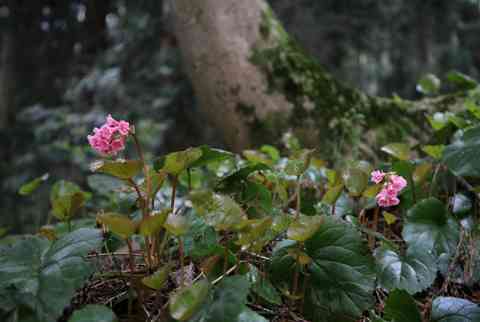 イワウチワとよく似ています。北陸から近畿地方日本海側に見られ、葉の基部が円形または、くさび型になっている。
