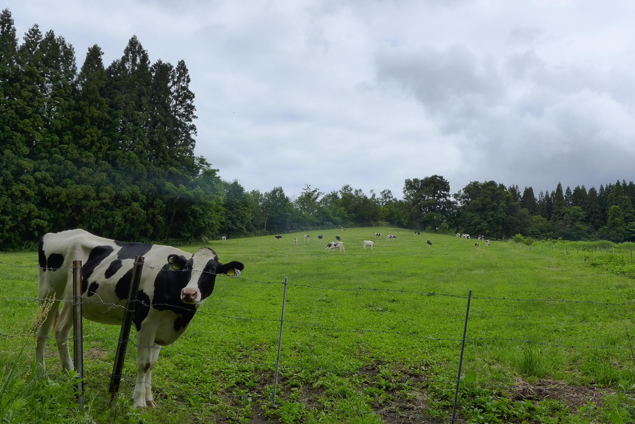放牧されている牛が可愛いのでカメラを向けたら奥にいた牛たちが一斉にこちらに走ってきた。