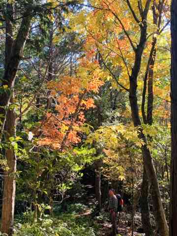 倒木を乗り越え、登山道をジグザクに登っていくとやがて緩やかな広い尾根に出ます。
