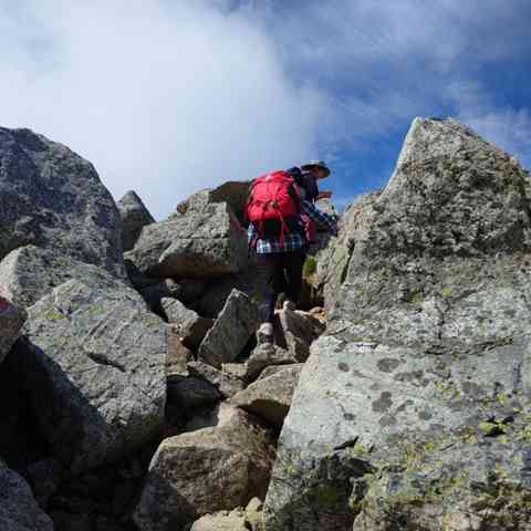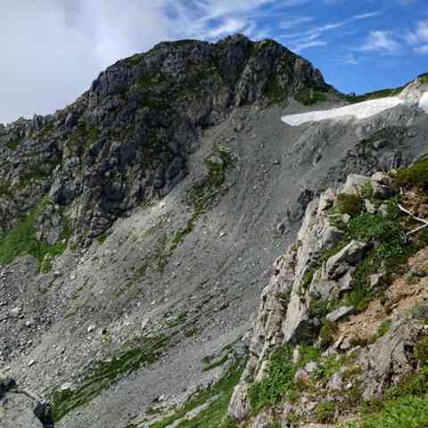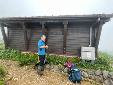 別山からが、また難所が多い。ガレた道は石が滑り気を遣う。チブリ尾根避難小屋まで、まだかまだかで歩いた。