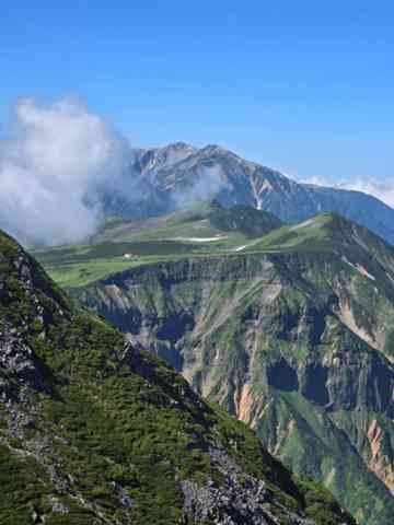 お天気は往きはガスって曇りがちでしたが、復路は雨の予報を裏切る快晴、眼下には黒部川 対岸には針ノ木岳、遠くは劔までが望めました。高山植物は五色が原に行く道では白山に劣らぬお花畑でしたが、五色が原自体は花は見当たらず、小屋の御主人の話ではもう咲き終わってしまったということです。近年天候の予想が難しく、以前は入浴ができるほど水が豊富だったのが雪が少なかったり、雪渓が早く溶けてしまったりで近年は激しい水不足、また去年は8月末には既に氷が張ったりするなど不順な天候だとのお話でした。往路も復路も休憩入れて大体5時間半でした。灼熱地獄の京都を離れて3日間。日本の真ん中はこんな険しい山々でできている、今そこに立っているとしみじみ感じた三日間。ガスって写真には撮れなかったのですが、ざら峠から見る切り立った崖は真っ赤な岩で草一本生えていないこの世の物とは思えない空恐ろしさに震えました。