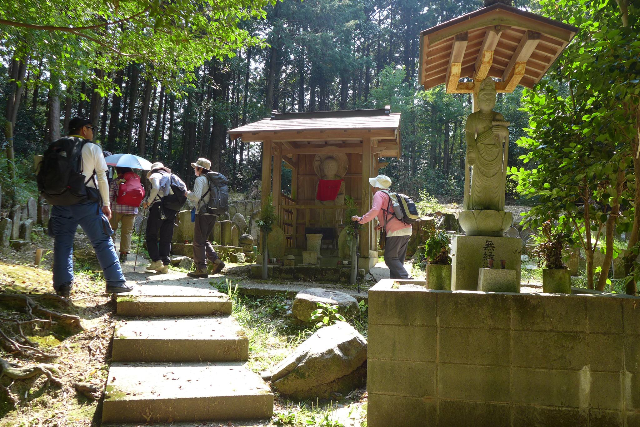 円照寺近くの竹やぶに無縁法界(一切平等)を祈願する観音様と平和と安全を祈願するお地蔵様が古くなった墓石と石仏に守られていました。