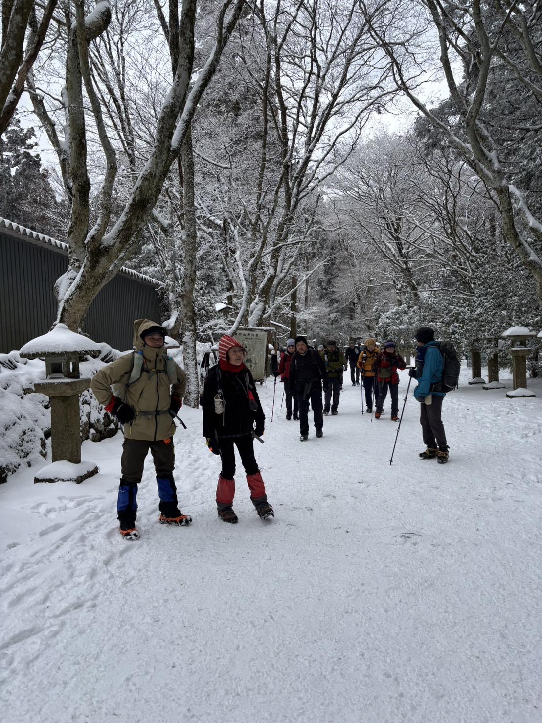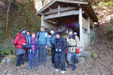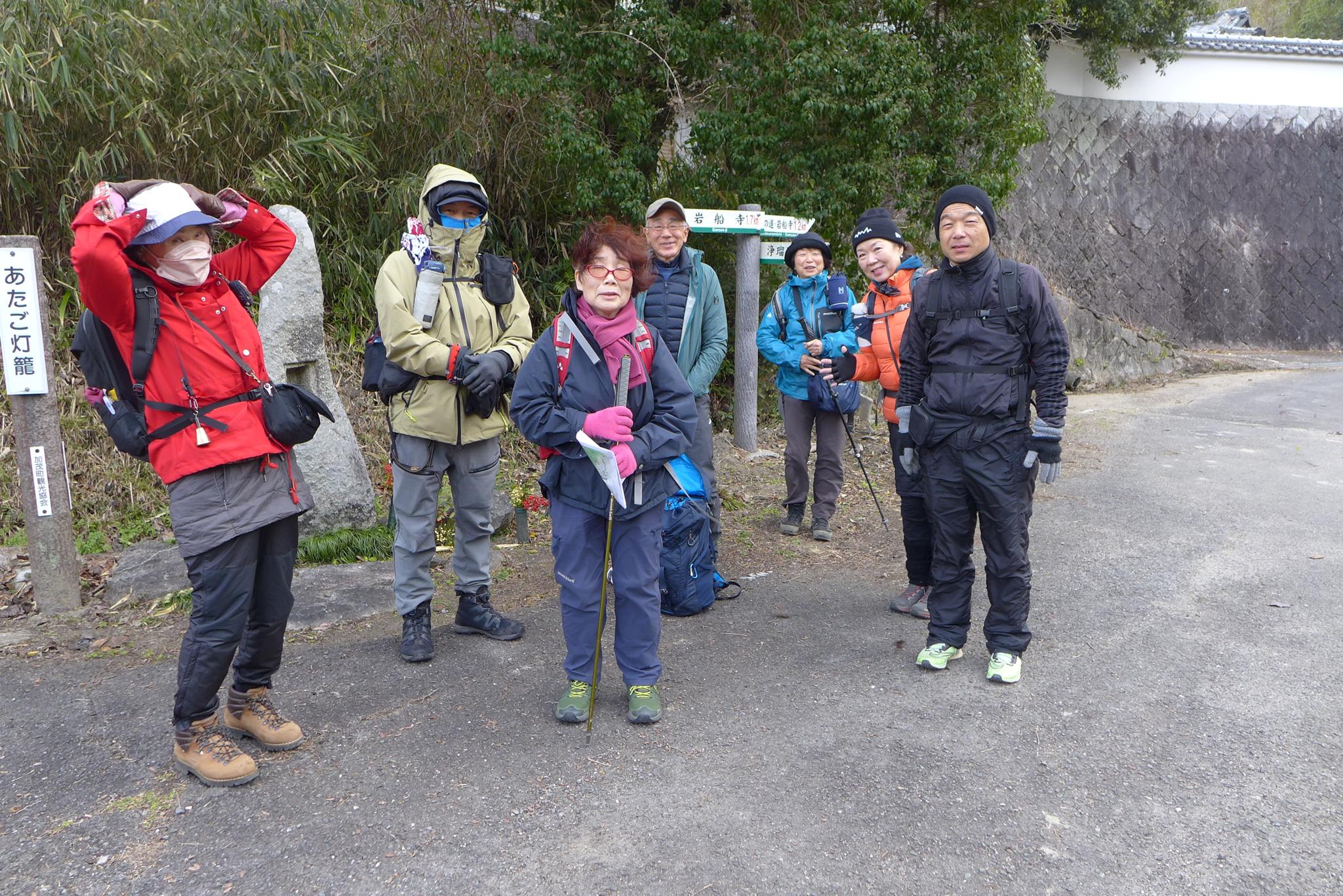 写真は歩き始めた東小にあるあたご灯籠でのメンバーです。