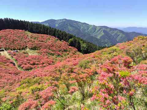 ダイトレ名物の長い階段を汗をかきながら1時間半で山頂に。一目1万本と称されるつつじに圧倒されました。