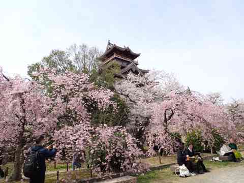 お城としだれ桜