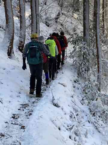 昼前に止むはずの雨がしつこく降ってやっと帰路には晴れました。温度は3度でも手足の先は冷たく山頂の小屋でのお汁粉が体中にしみました。準備等感謝です。