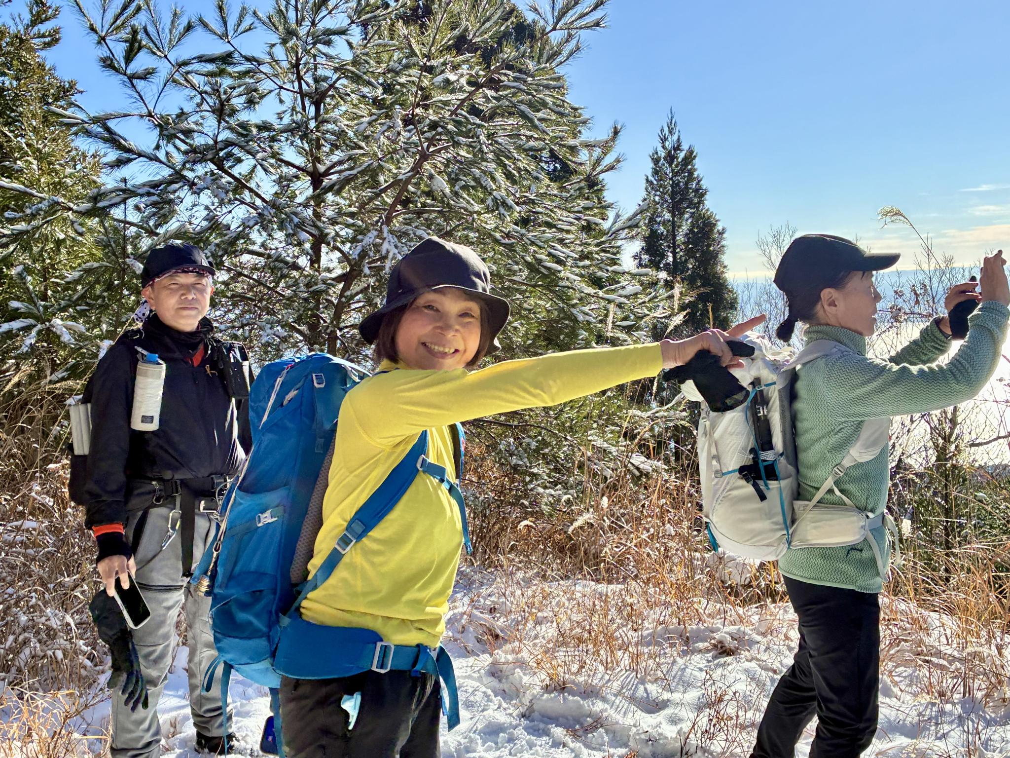 新雪の上を歩く楽しさ、琵琶湖を眺めながらの気持ちのよい縦走を心ゆくまで堪能しました🩷