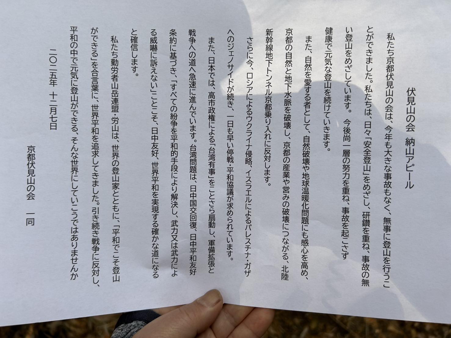 登山の安全と世界平和を祈願して