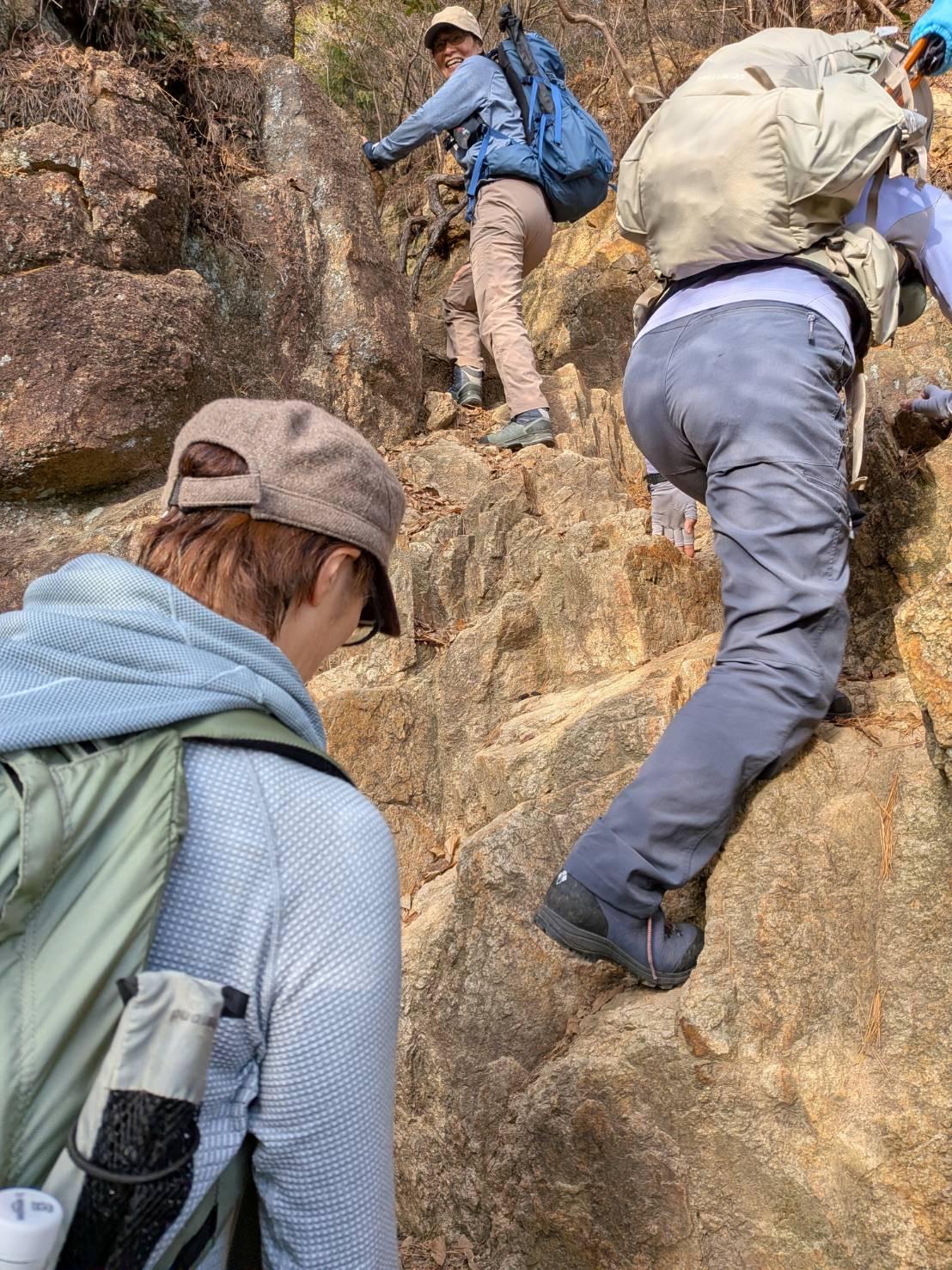 山頂の直前には岩場もあり