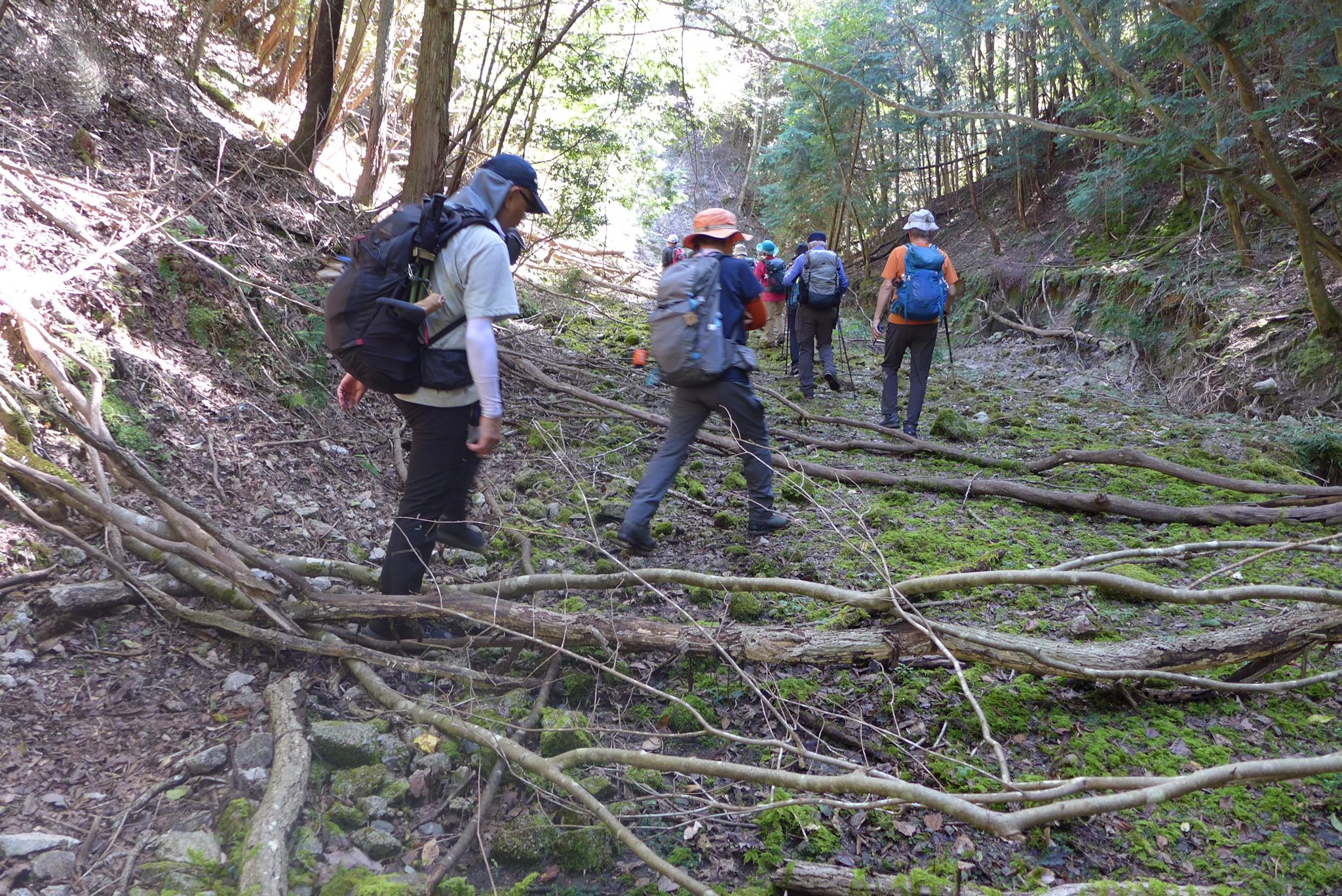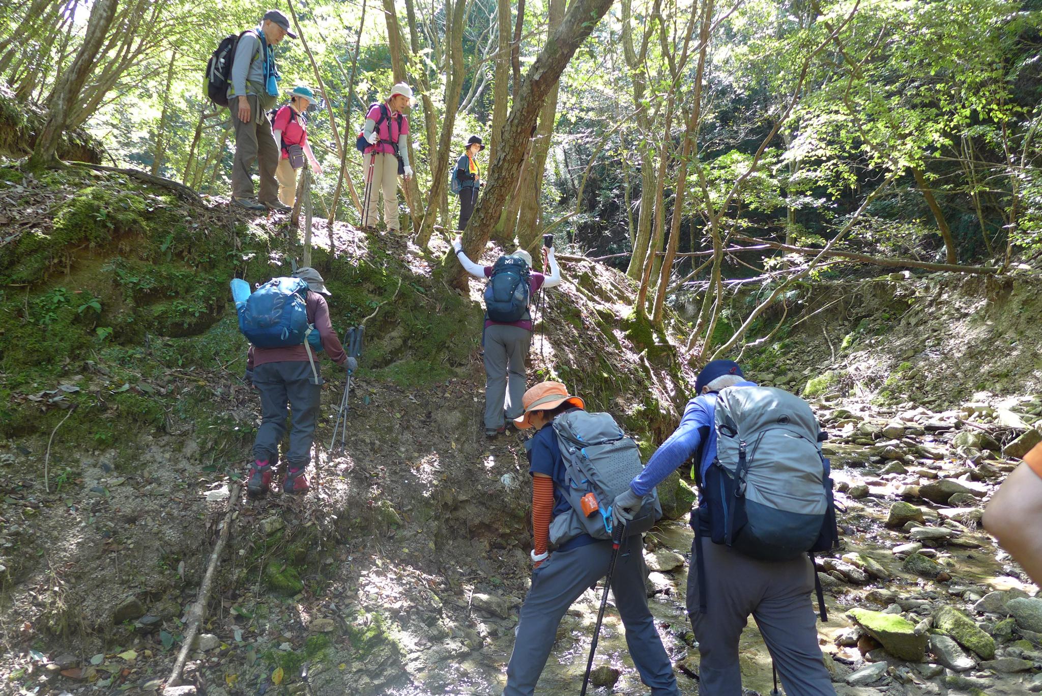 天気は秋の気配、12名で荒れた沢を歩き読図をしてハイキングを楽しみました。