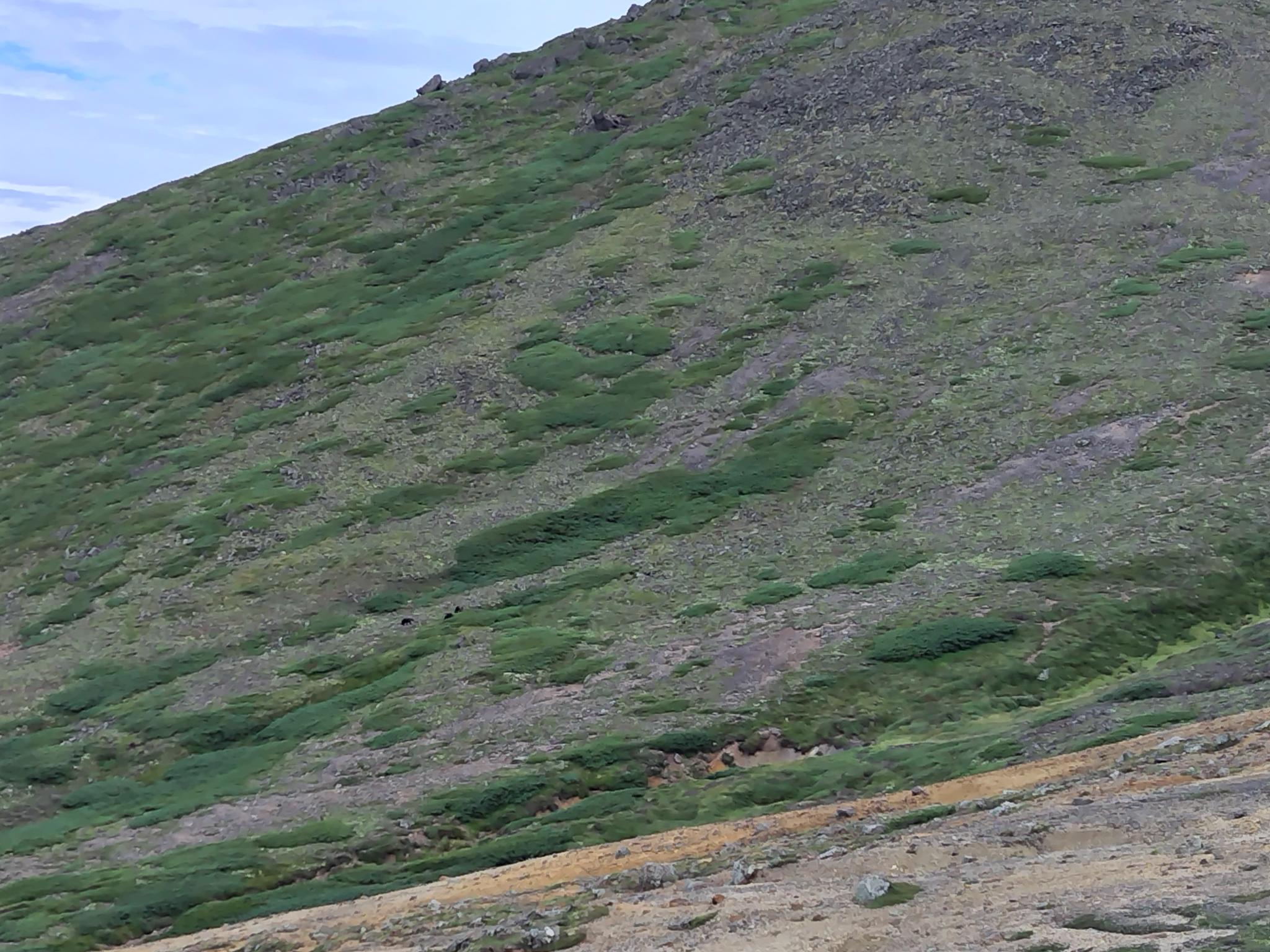 中岳付近で北鎮岳西面のヒグマの親子に遭遇。距離は500mぐらい。拡大して見つけて下さい。