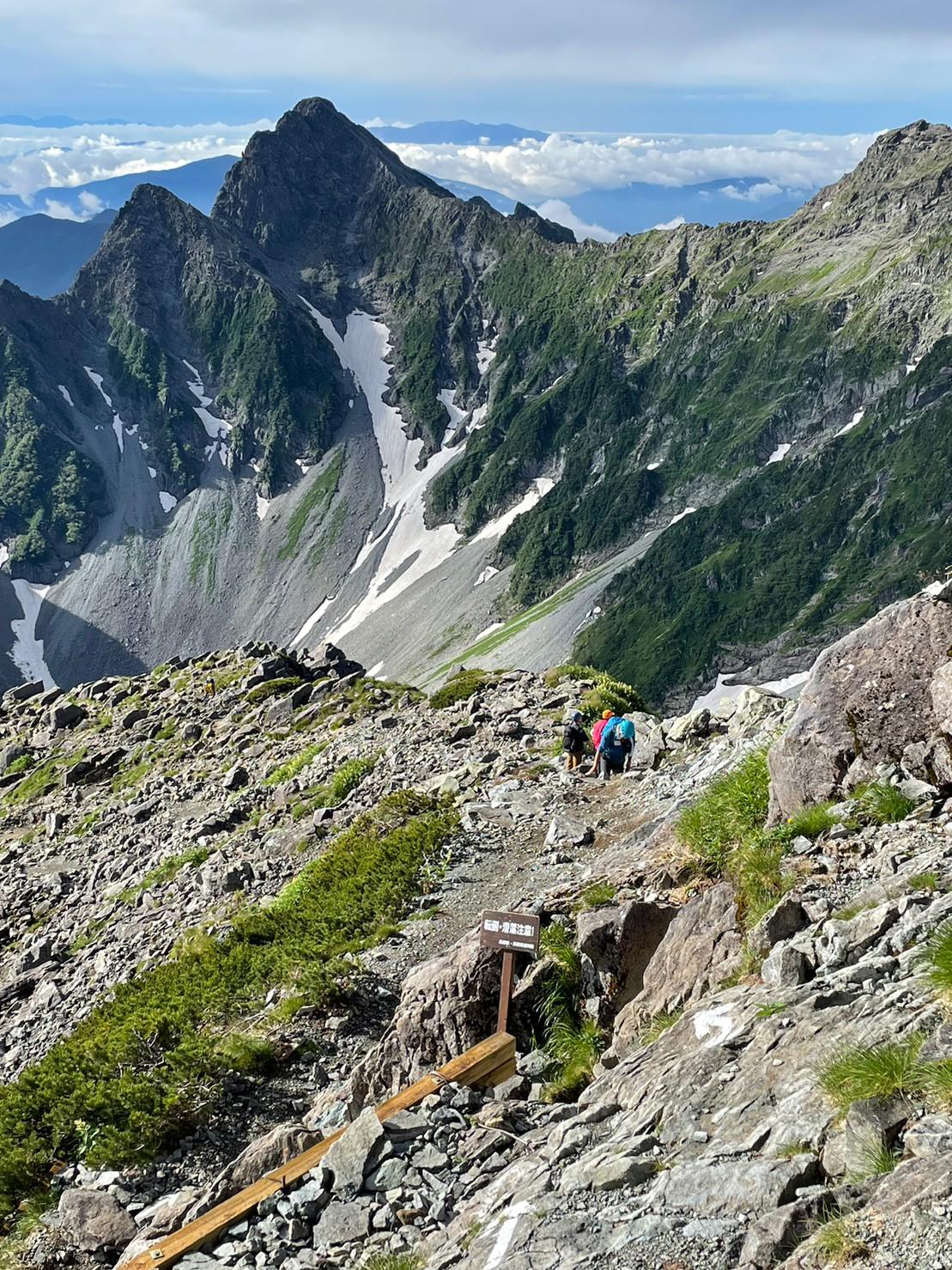 登るほどに穂高の山並み、カールがきれいに見える。