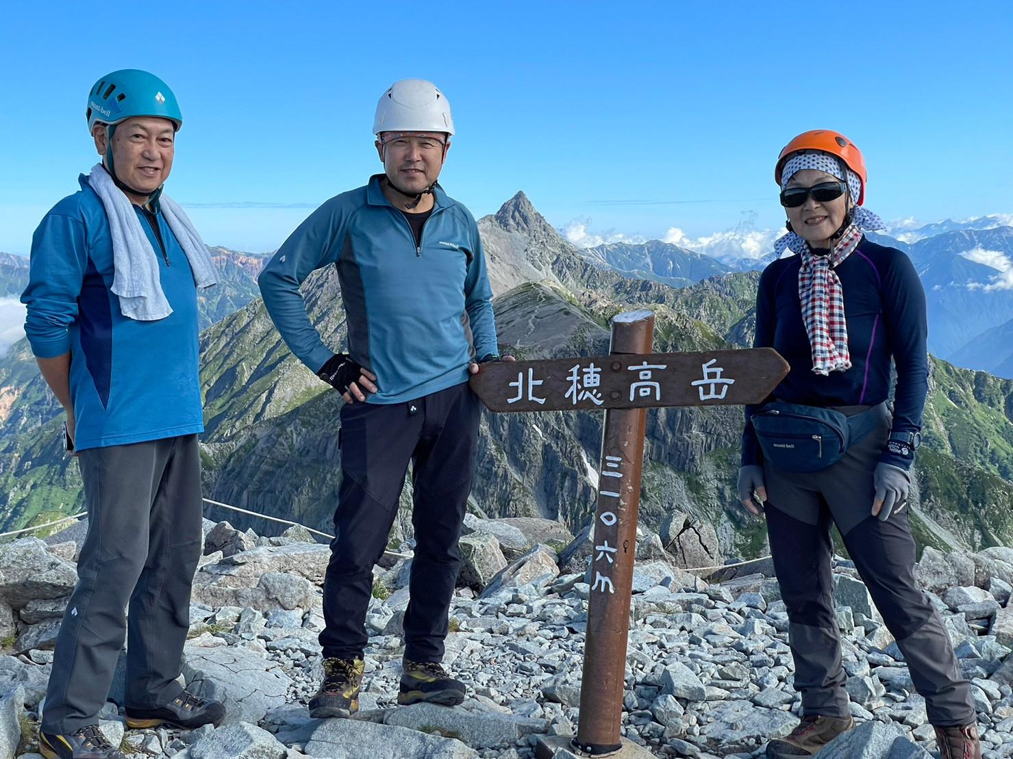 北穂高岳北峰頂上からは雄大な展望が楽しめる。槍ヶ岳の姿に感動!