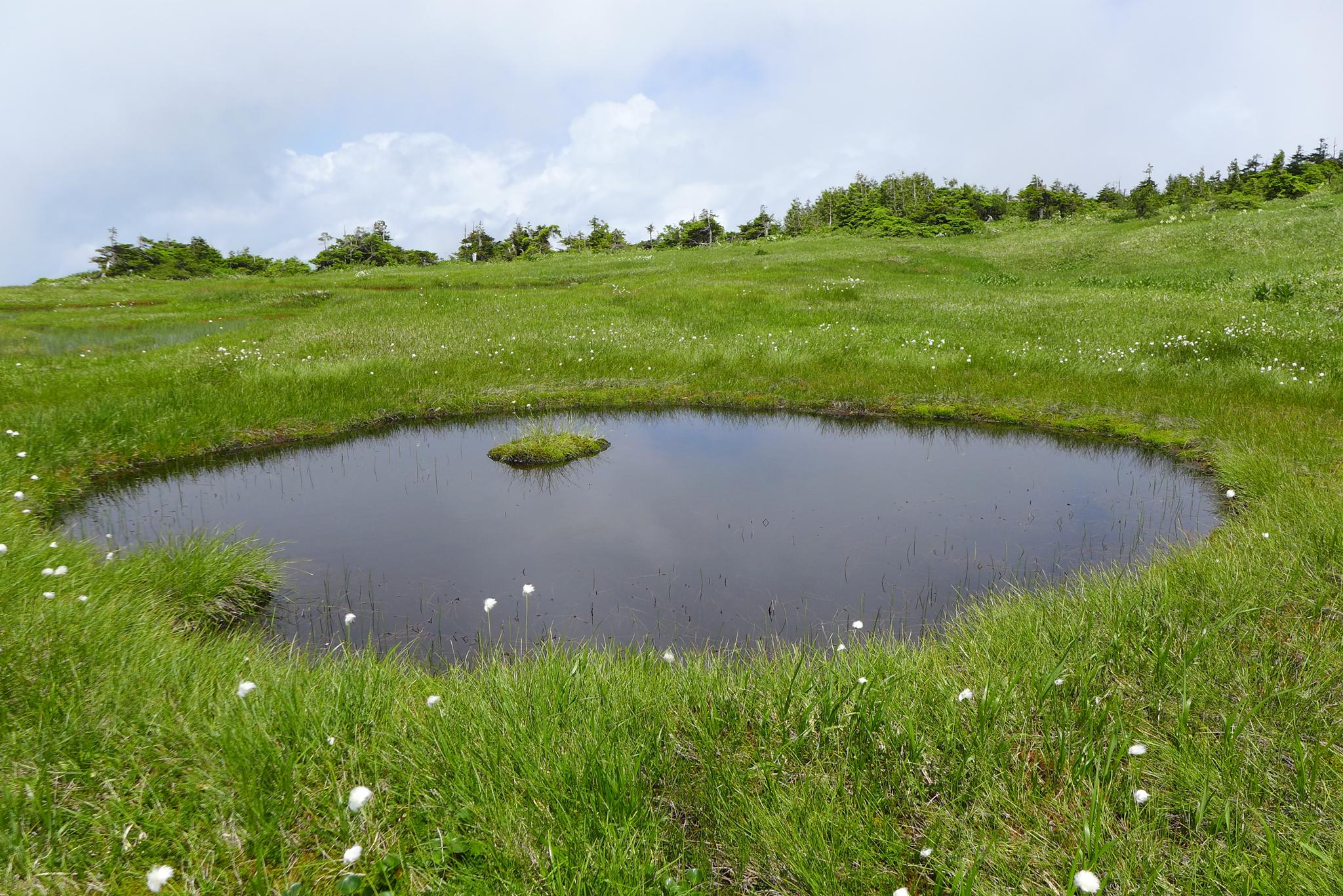 ここかしこに点在する池塘の中でもワタスゲに囲まれた島のある池塘は印象に残りました。