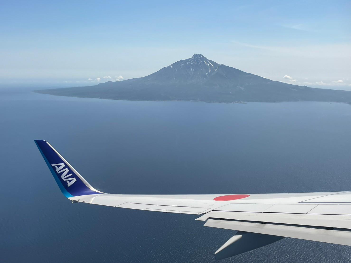 伊丹空港から新千歳空港、そして利尻空港へ!飛行機から見える利尻岳は、すそ野を緩やかに広げ、まさしく利尻富士!あのすそ野から明日は登るんだと思うと・・・・・ここまで来れたんだ!感激でいっぱいだった!