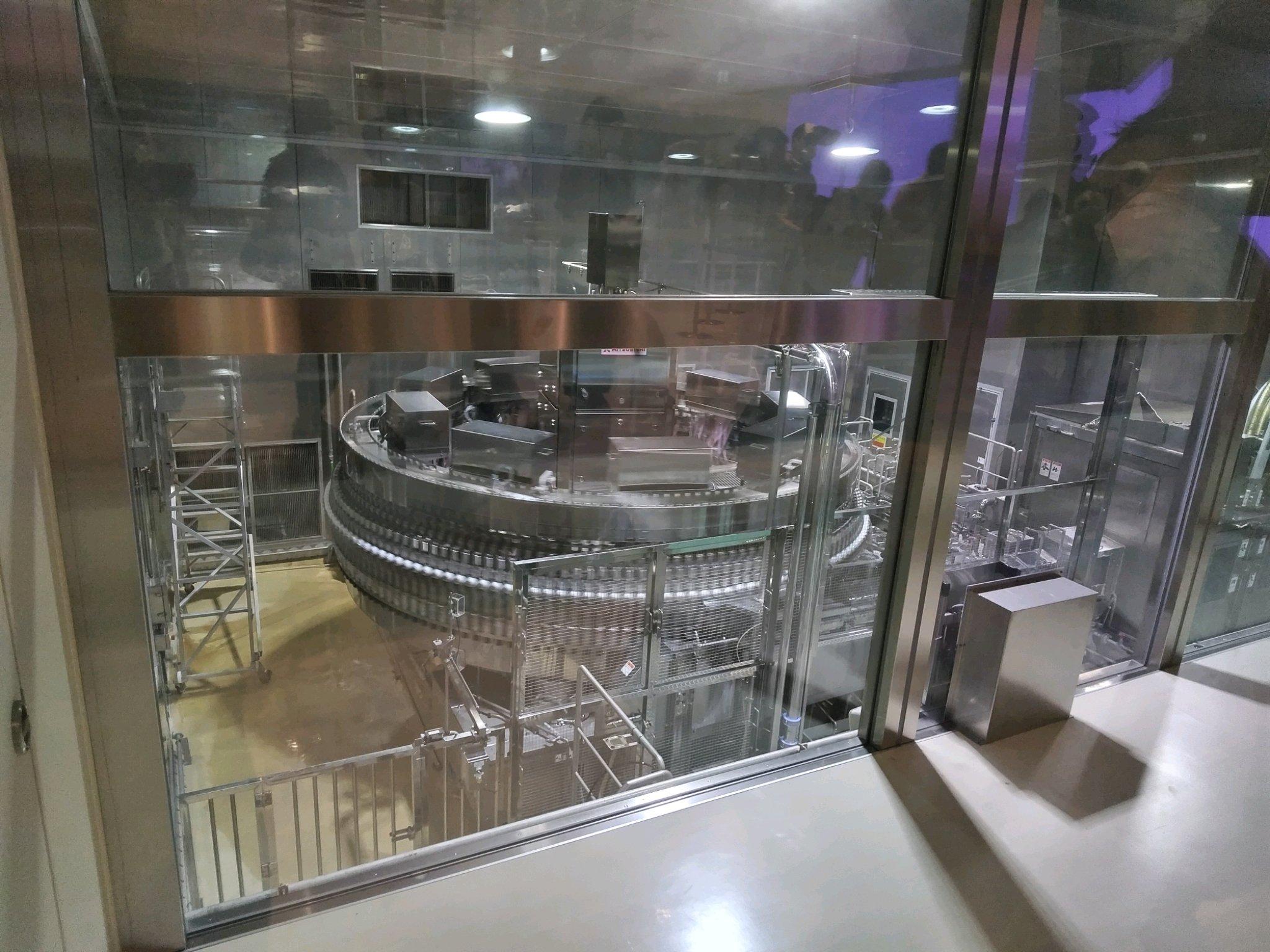 ガイドさんの説明でビール製造ラインを見学する(6月30日)