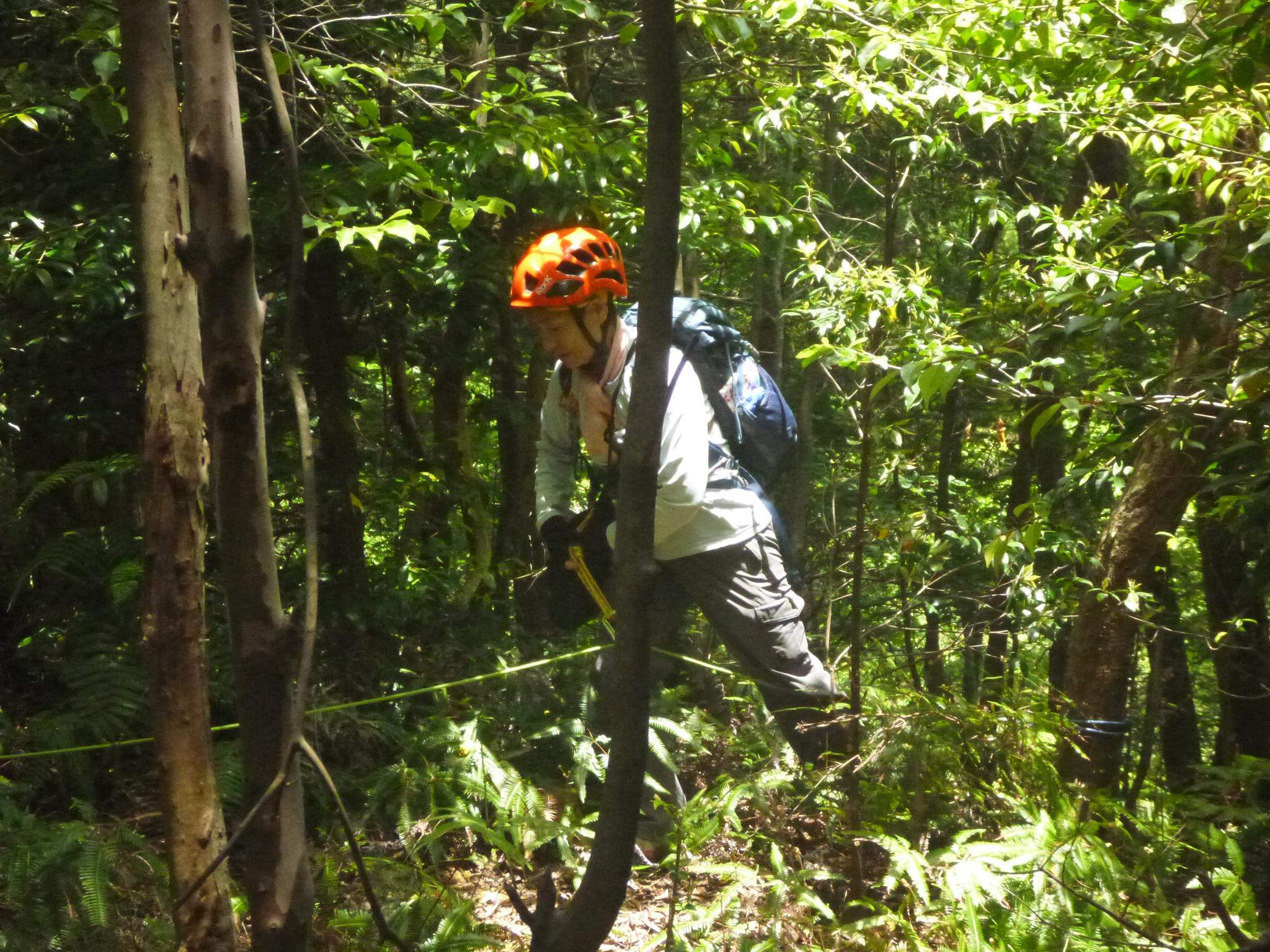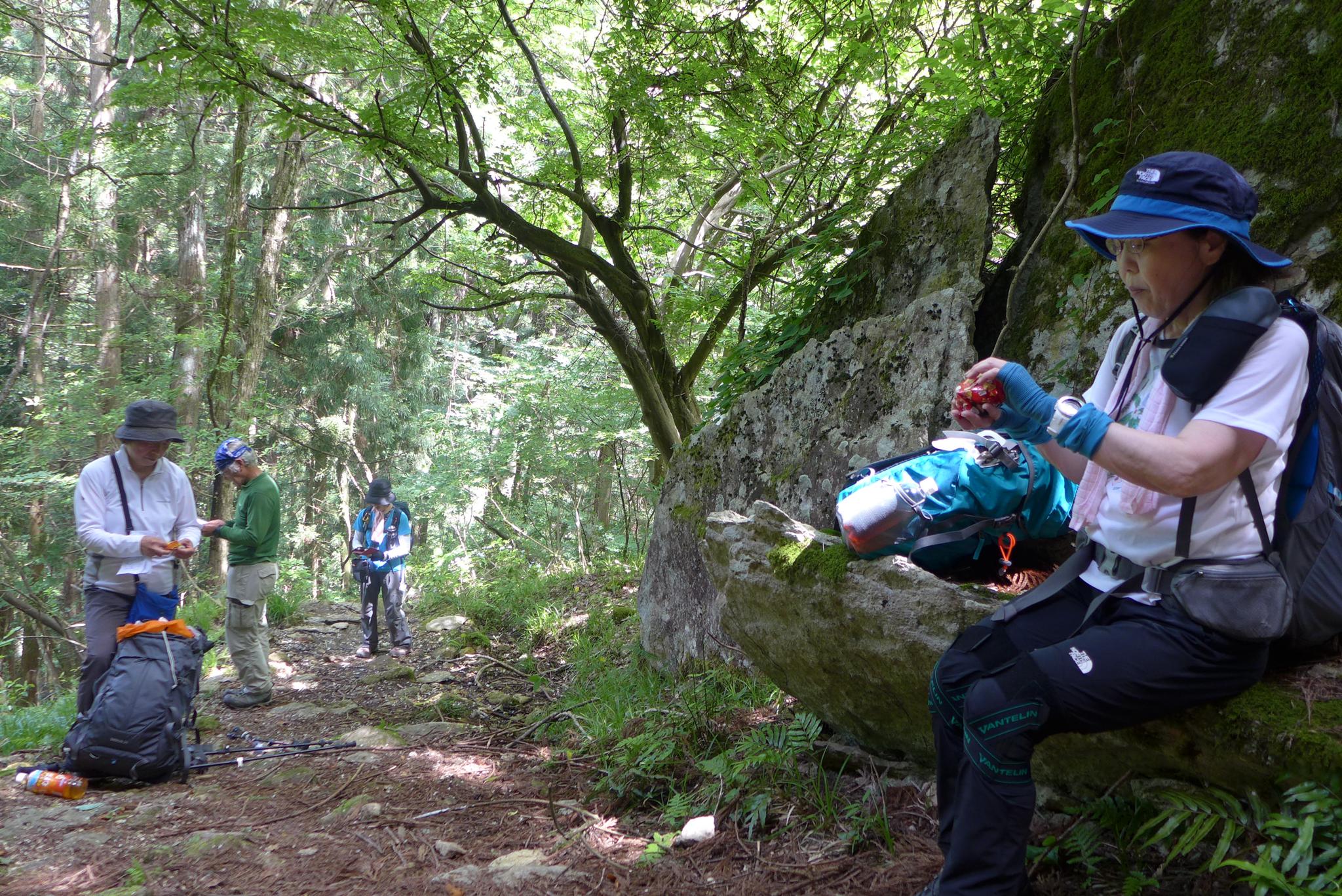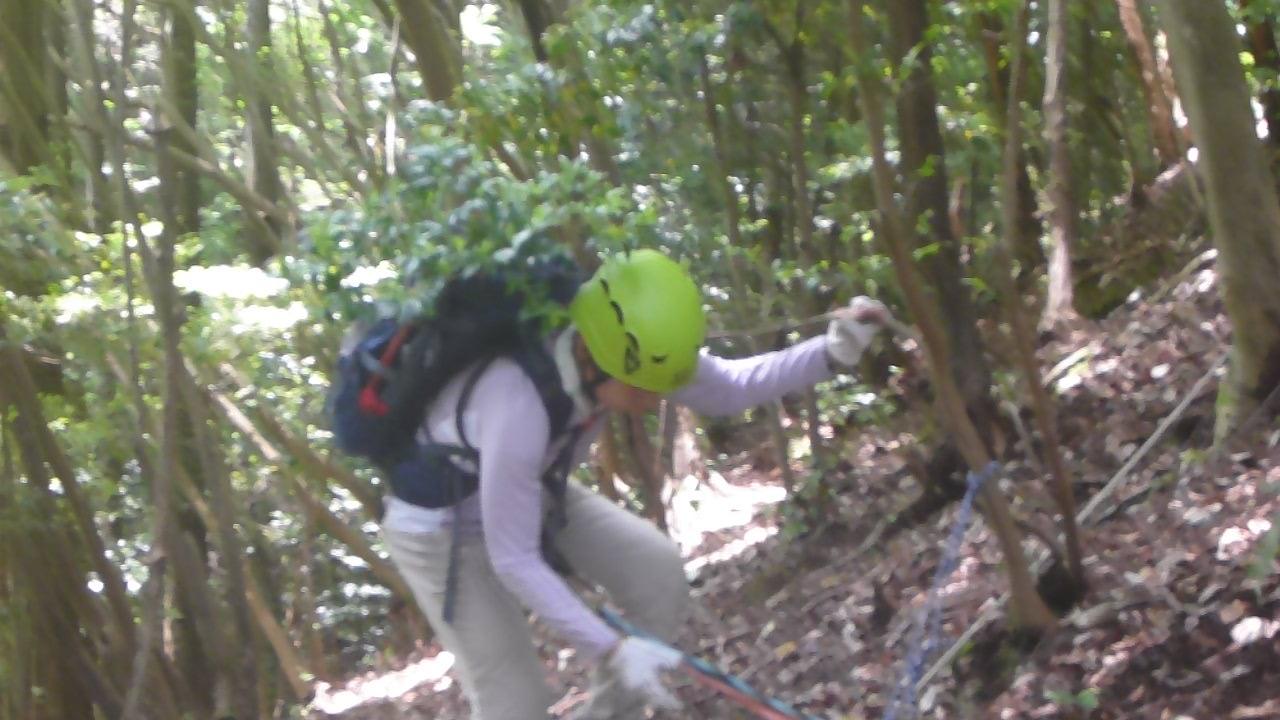 一枚岩の泥岩の急登で苔がついて本当によく滑りました。設置されたロープに掴ませていただきました。