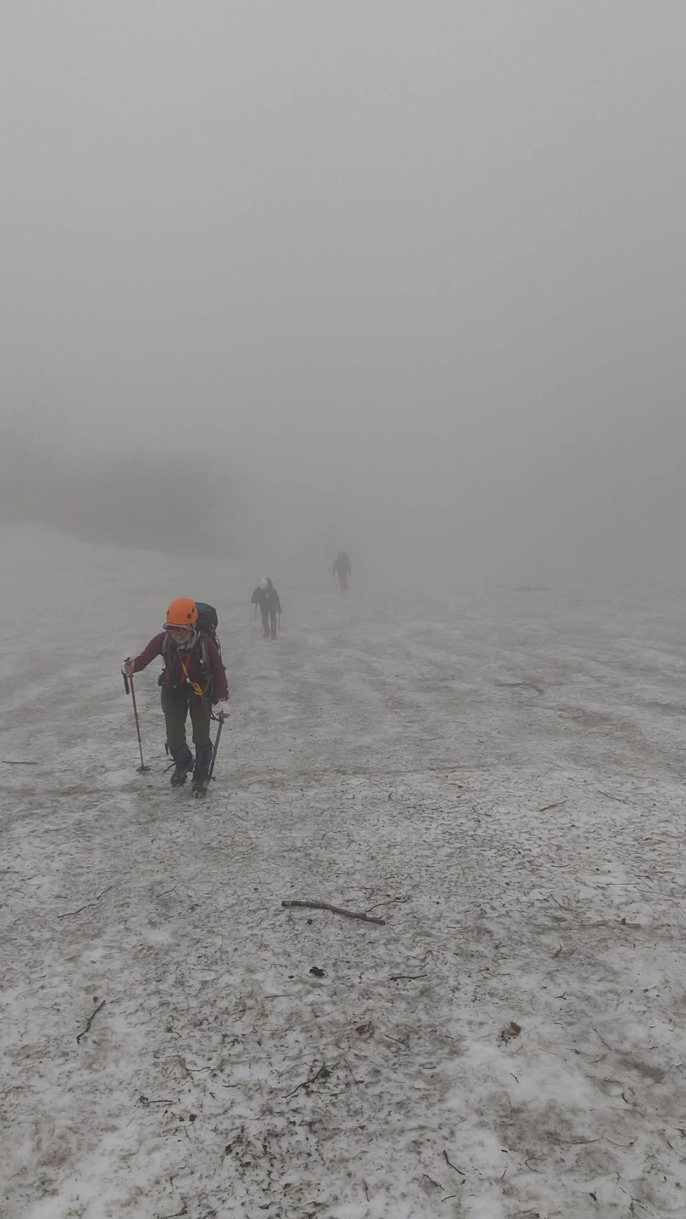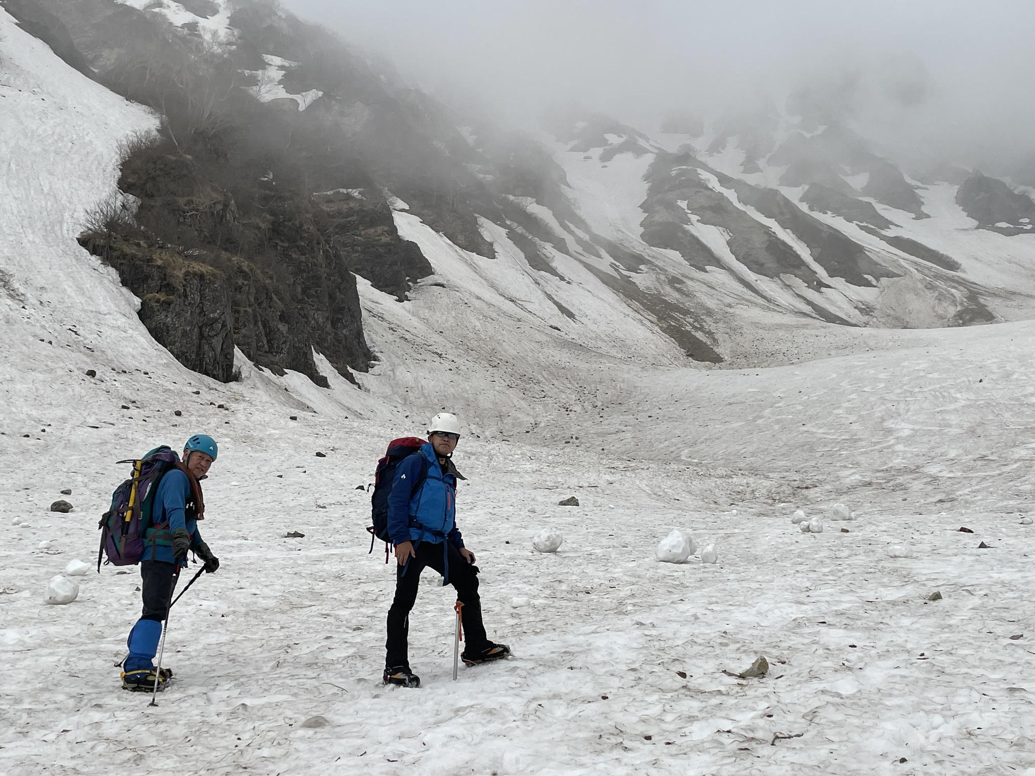 視界の悪い大雪渓の急騰をひたすら歩きます。