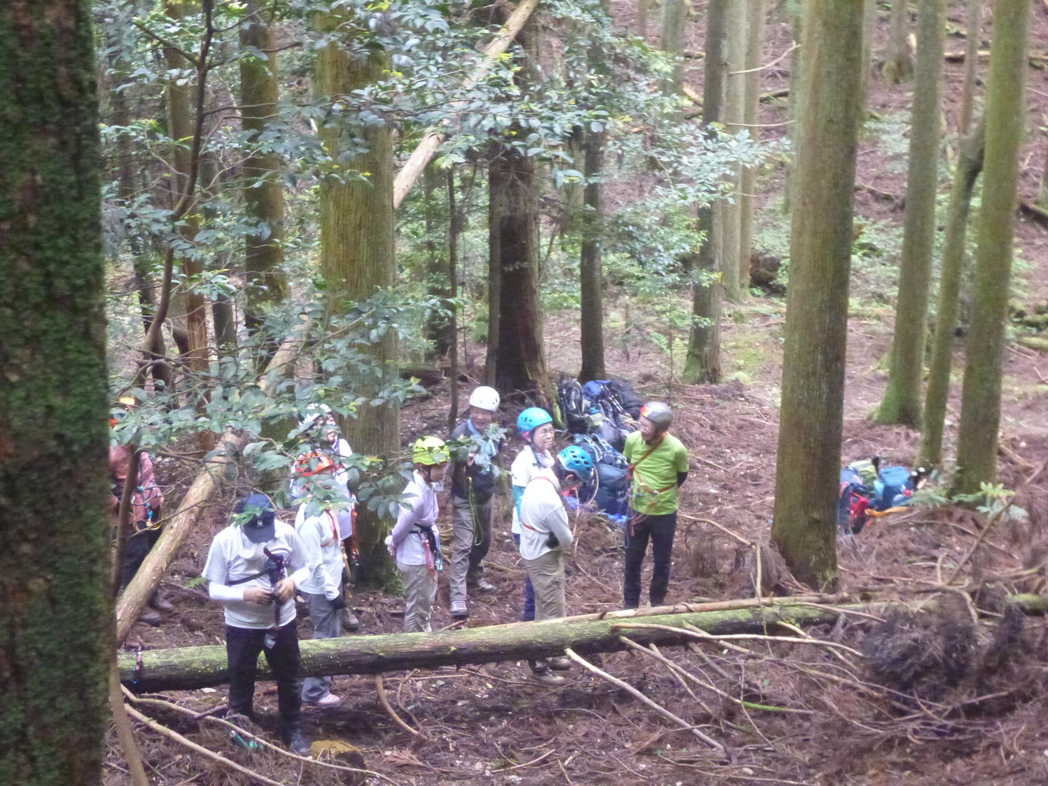大文字安祥寺、林道入口で搬出訓練実施(5月21日、14名)