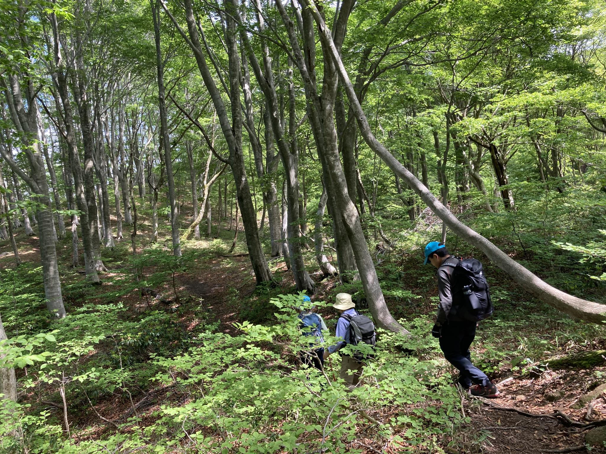 敦賀三山のひとつ 岩篭山に登りました。山頂直下のインディアン平原からは日本海 野坂岳 赤坂山をはじめ若狭 越前 湖北の山々琵琶湖余呉湖などが一望 胸のすくような、飽きない景色に大満足でした。それにも増して心に残ったのは 美しく広大なブナの森に包まれて続く山道には言葉にならない癒やしを感じた山行になりました。