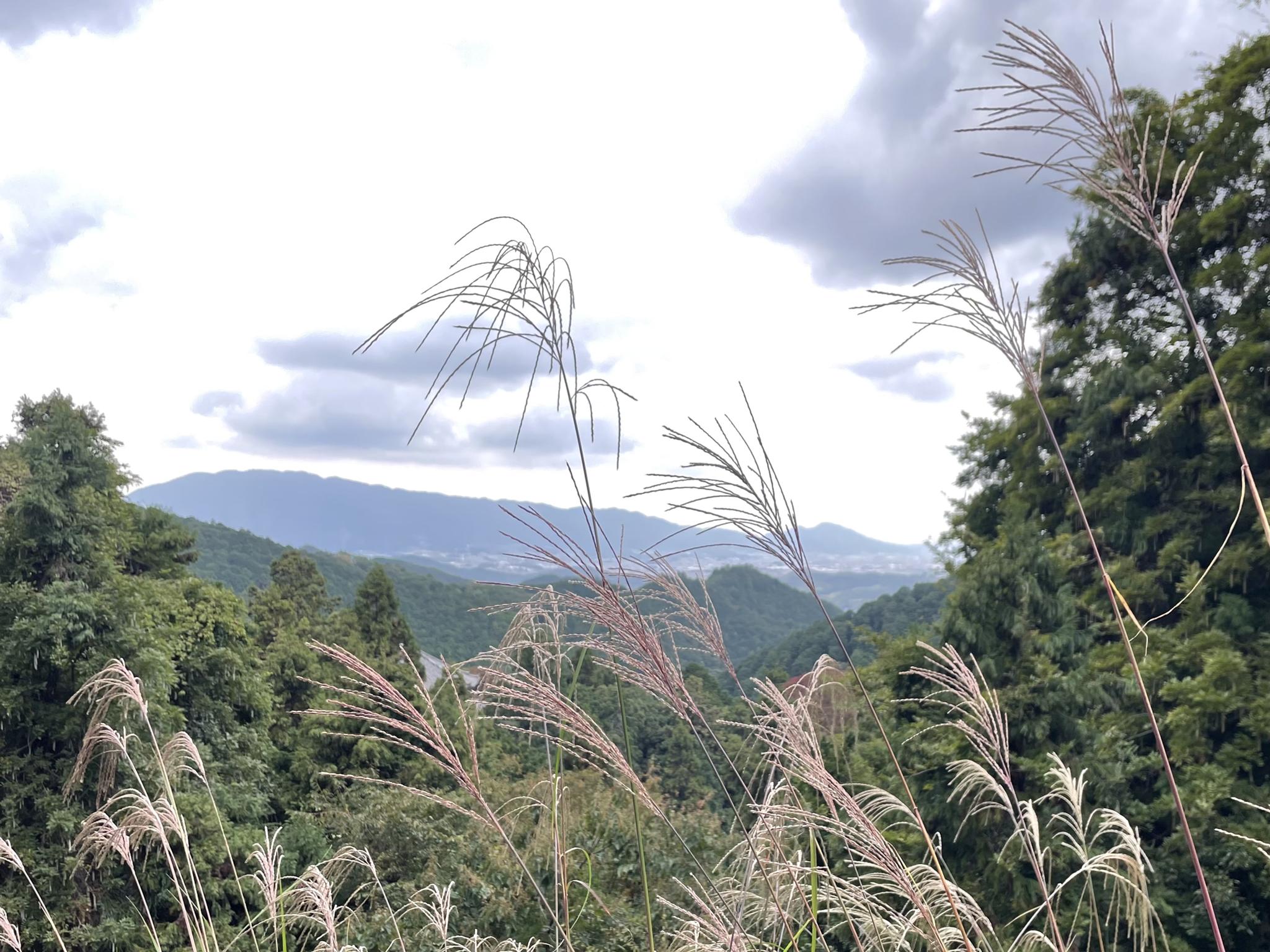 ススキの向こうには大和葛城山と二上山が見えました。