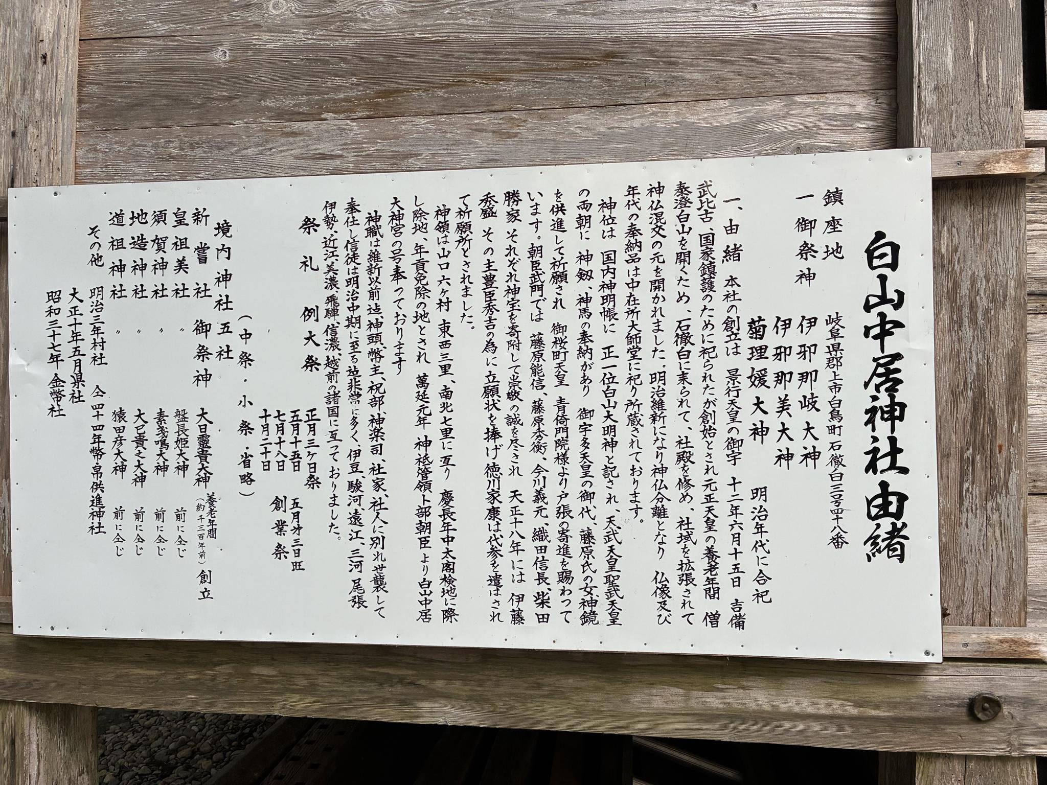 ここ白山中居神社は白山信仰の表参道の拠点でした。