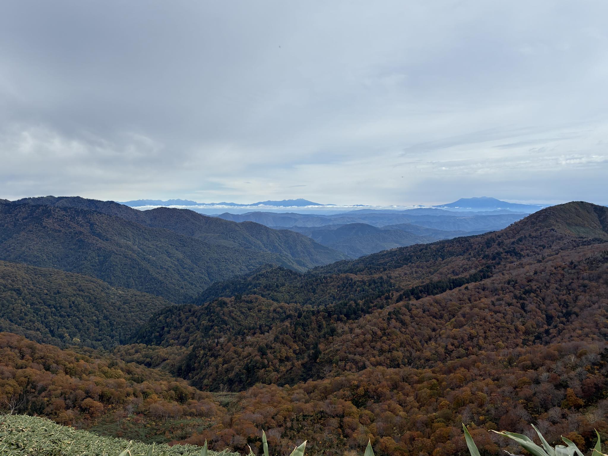 紅葉を楽しみながら、雄大な稜線を歩いて来ました。