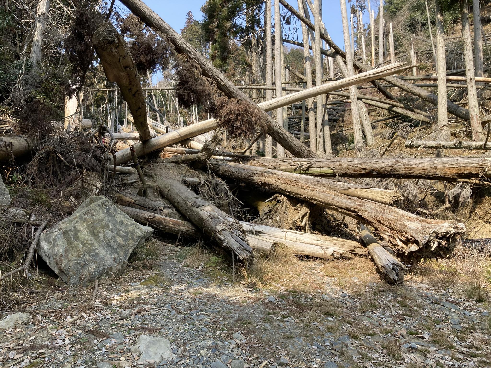 倒木に頭をぶっけて谷川に転げ落ちた。
