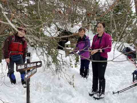この日の登山はたぶん我ら4人のみ。だれの足跡?だれのうんち?まさか冬眠できずにいる熊ではないよね?岳山を越えると、初めての雪山歩きのSさんは不安げな表情に・・・「こんな道ずっと歩くんですか?」帰宅時間のことを考え、オウム岩手前100mでUターン!
