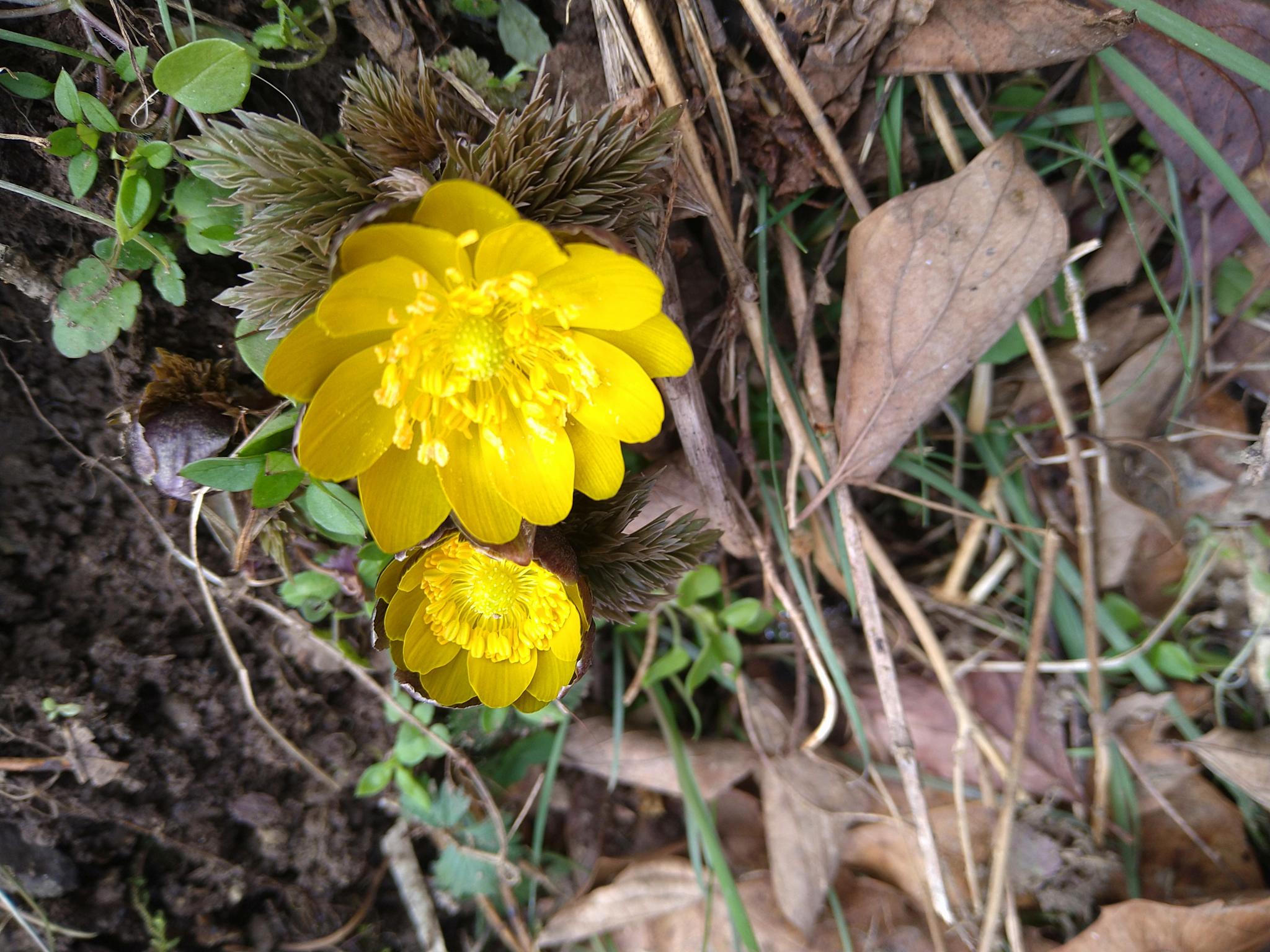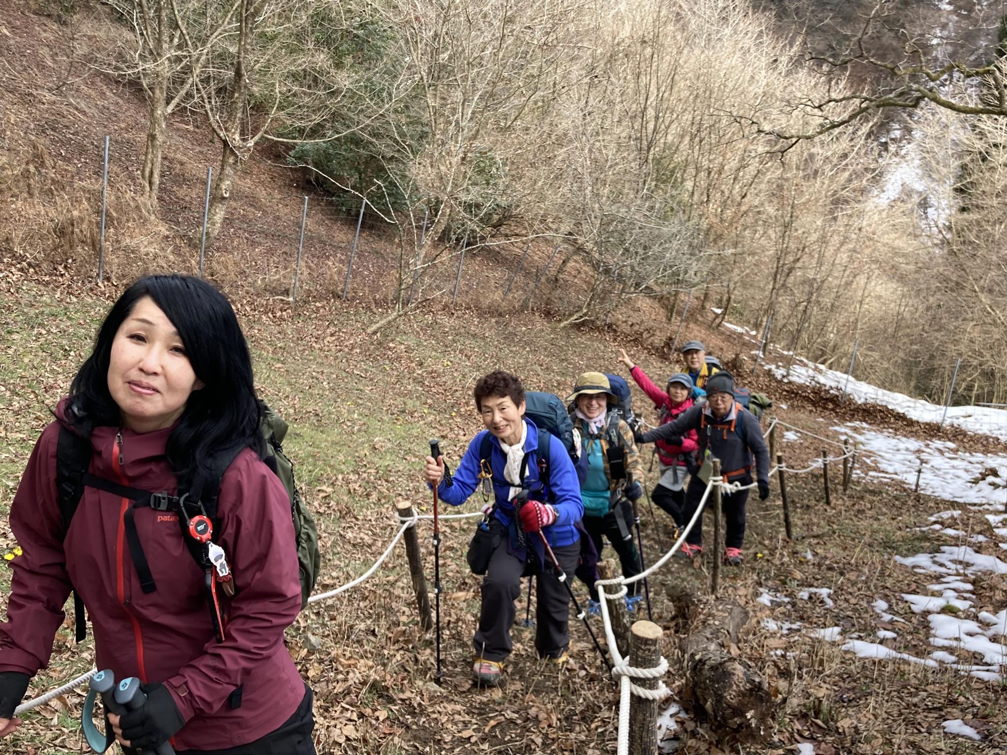 激寒じゃなくてのんびり歩いてリーダーが咲いているかなと心配していたかわいい福寿草みれて。でも今年はやっぱり雪が深い。この集合写真のあとの下り急遽アイゼンをつけることに。福寿草の良い写真どなたかアップしてね。