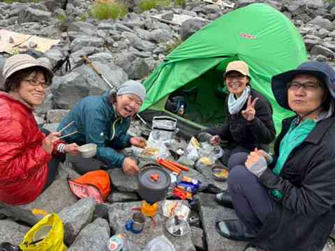 頑張って登ってきて、楽しい夕食の時間!テントでの食事もなかなか豪華
