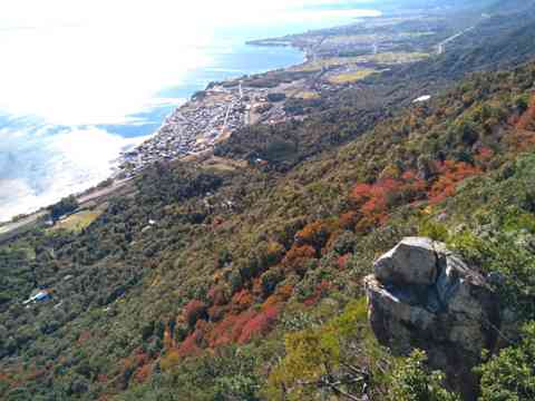 始まった紅葉とすっきりと広く見渡せた琵琶湖の遠望を楽しみながら
