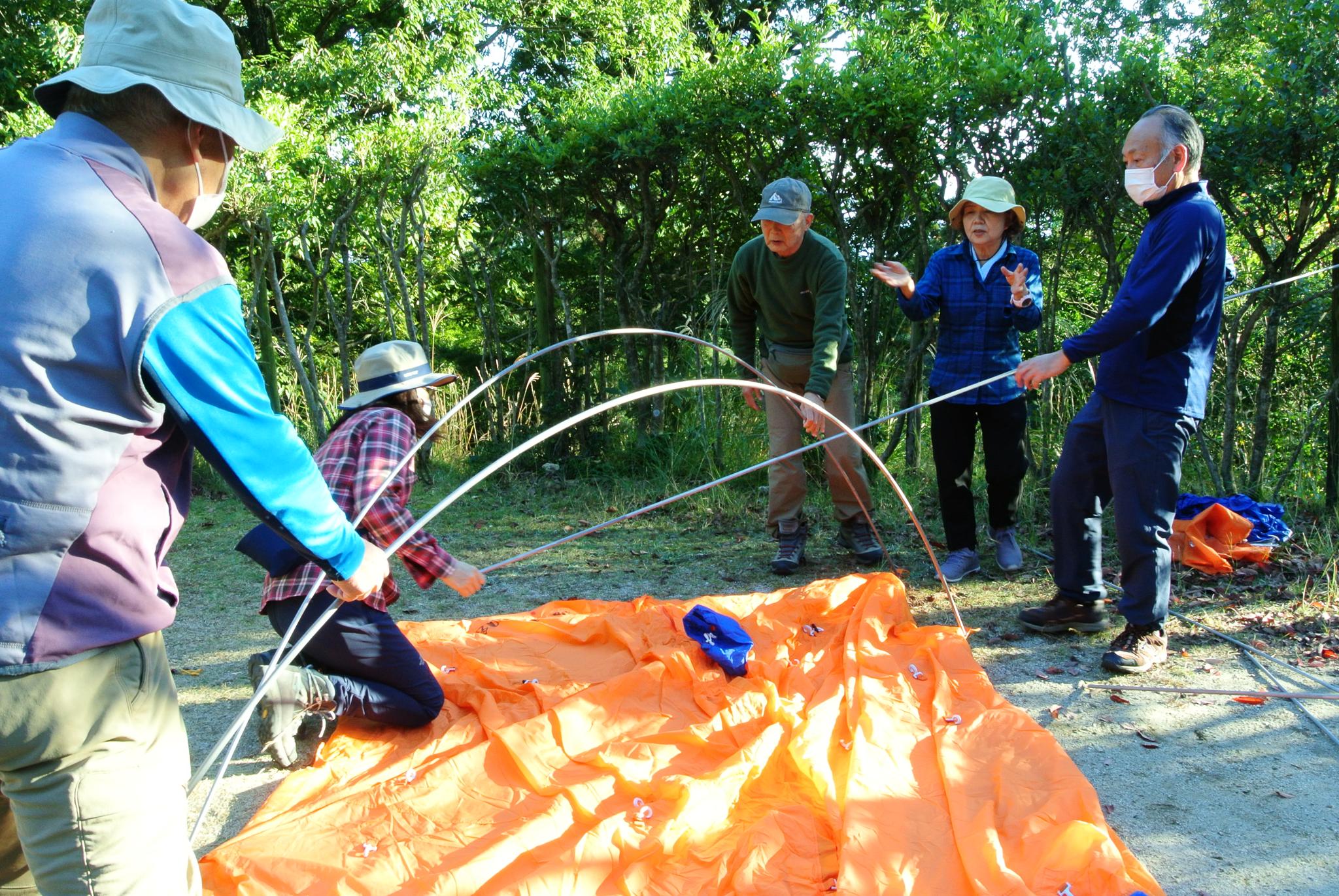 バーベキュー準備、テント組み立てと忙しい‼