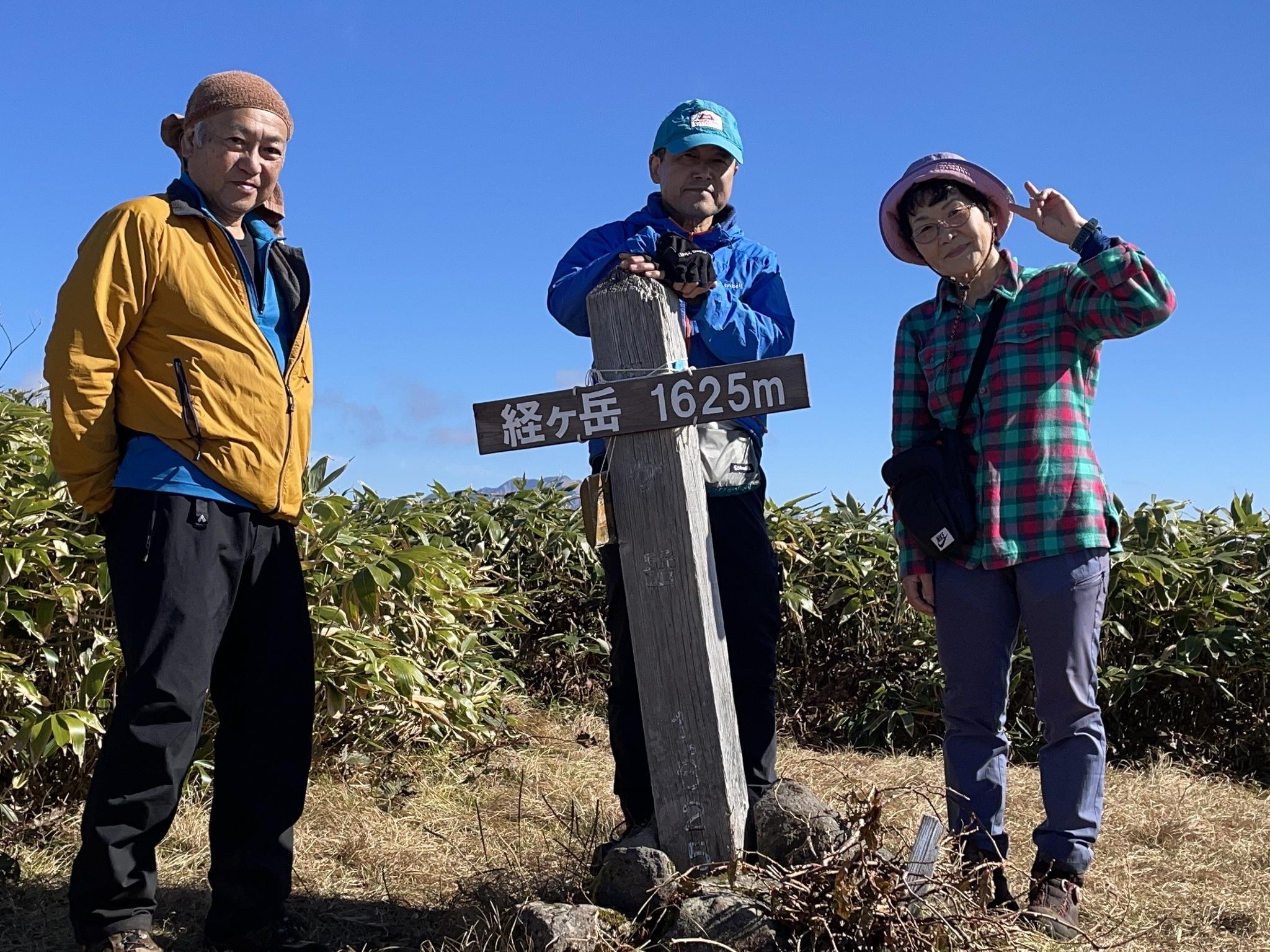 やっとたどり着いた経ヶ岳頂上。月曜日とあって、頂上独占状態でした!三の峰、別山と山並みがとてもきれい!