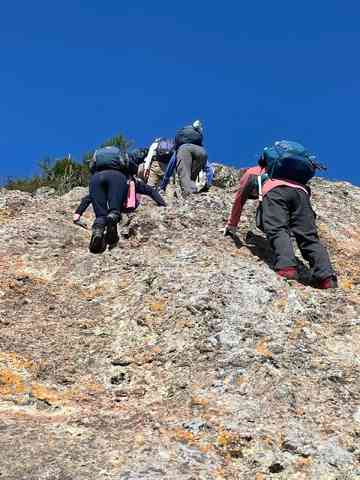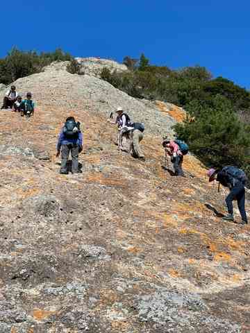 彼方此方に大きな岩場があり、ロープが付けてありました。全員岩トレの訓練をして来たお陰でスムーズに安全に通貨できました。やはり、毎年の「岩トレ」は大切ですね。