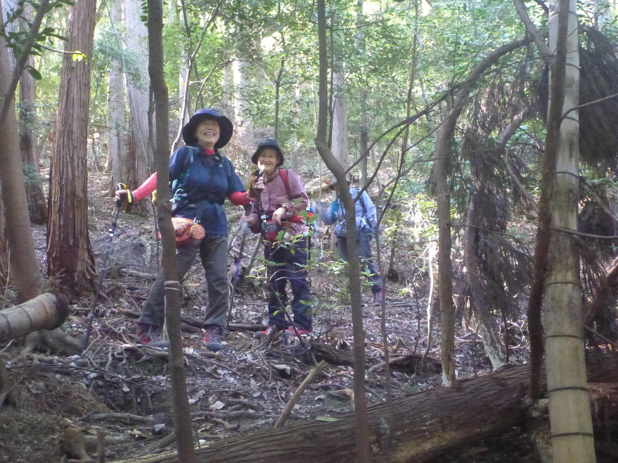 「夫婦杉」と名付けられた大きな杉、仲良く手を繋いでいました。他にも面白い形をした古木、大きな岩の上に何十本もの木が群生している不思議な光景も面白かったです。