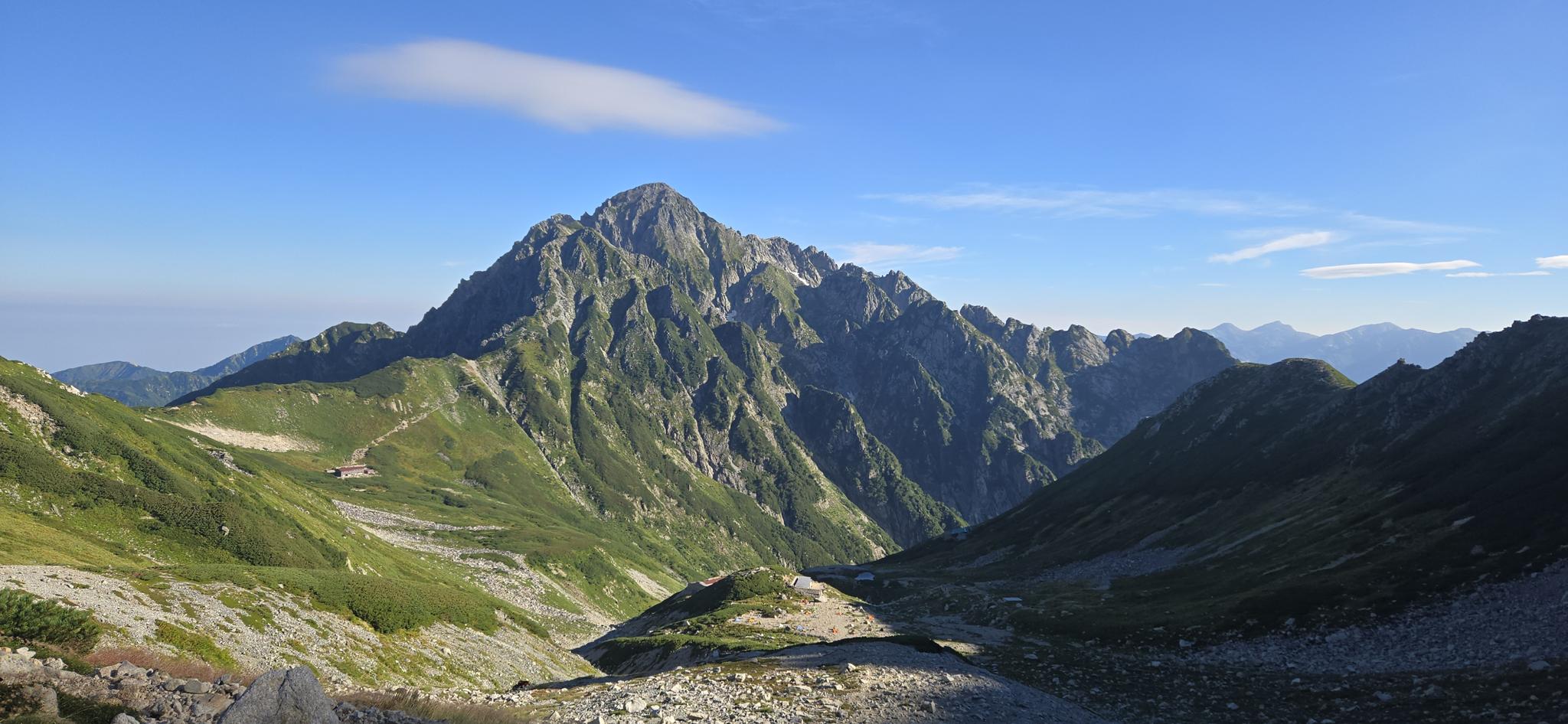 山頂から見る白馬岳、残念ながらしばらくで雲の中に入ってしまいました。