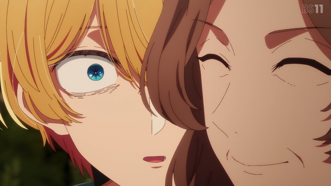 >ちなみに、その個人間オーディションの後、アクアが黒川あかねを待ち伏せしていたかのように出くわすあたりなどは、あにこ便での「アクアがナチュラルにいるのが怖いのよ(例の件を含めて)」などといったコメントも笑えなかったり。