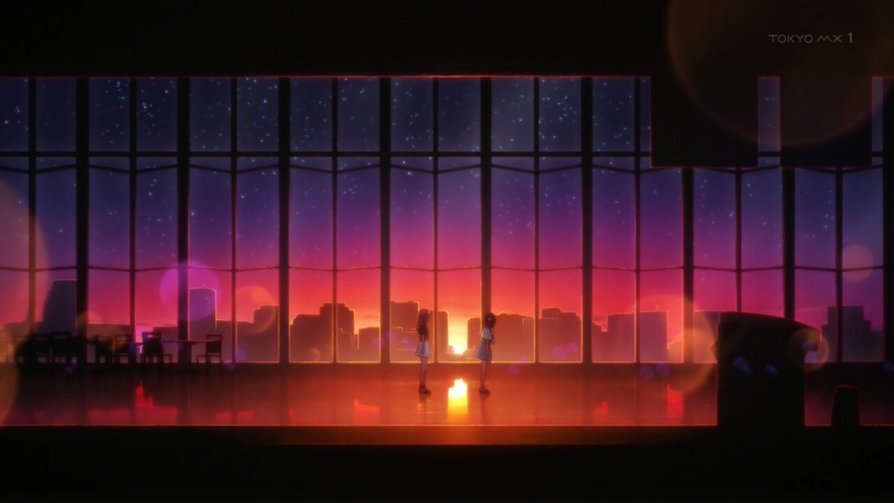「君は放課後インソムニア」 第11話「夜明けの一番星」 >他所の美津未には見慣れた景色なのかどうか。そこへ行くまでの道は人通りも少なく、やはり美津未が危機感を持つように過疎化が進んでいるようで。 貼り付けていただいた画像など、観光シーズン以外は人手のまばらな海辺の小さな市町村のいかにも典型的な風景だったでしょうか。 あと、バス時間の確認は気をつけようねとも。一たび乗り過ごしたらどれほど待つかしれませんからと。https://livedoor.blogimg.jp/anico_bin/imgs/a/9/a92fffc7.jpg ちなみに、二人の仲睦まじさを見ていると「回復スポット」という表現も、実に意味ありげに聞こえそうだったり。https://livedoor.blogimg.jp/anico_bin/imgs/b/1/b1a7c98f.jpg >ここに来て丸太が眠れない理由が明かされました。ファーストシーンで朝目覚めたら母親が家を出た後だった、というのが相当トラウマだったことでしょう。以降、明日を迎えるのが恐くなり無意識に今日を先延ばしするようになったしまったようですが。 その事を伊咲に話したうえで 『ここに来てから少し変なんだ。不安が全然ないんだ』 『毎日やりたいことしたいことしかなくてさ』 などと、ほとんど告白を通り越してプロポーズとも思えそうなくらいだったでしょうか。 伊咲からは『この旅ゴールするまではこのままでね』と言われましたが。https://livedoor.blogimg.jp/anico_bin/imgs/3/7/372c1d3c.jpg そしてよほどの安心感からでしょうか、眠りたくないなと思いながらも瞬く間に熟睡できたのは実にお約束で。