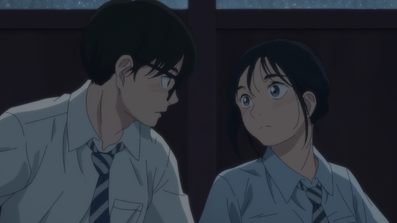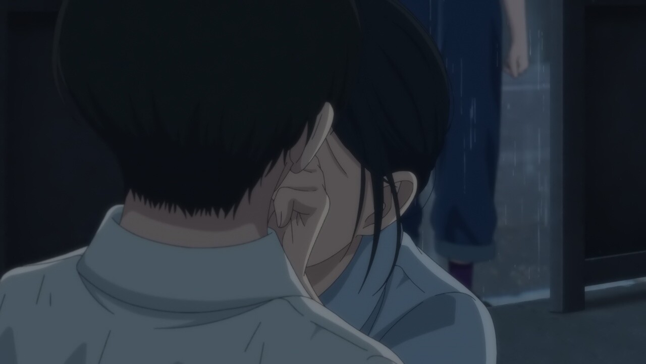 志摩の方は、やはり兼近先輩と距離を置くし、美津未とも積極的に関わって来ないし、前回のことが相当応えているようで、去っていく美津未の背中を見るシーンが重いですが。直後に美津未がUターンしてくるのが、ちょっと泣きたくなるような良い展開でした。そしてそこで深く追及せず、イカ煎餅を追加であげるのに留めるあたりの気遣いも良かったかと。美津未の言う「またあした」が明日もまた二人の普通の日常が続いていくかに思わせました。