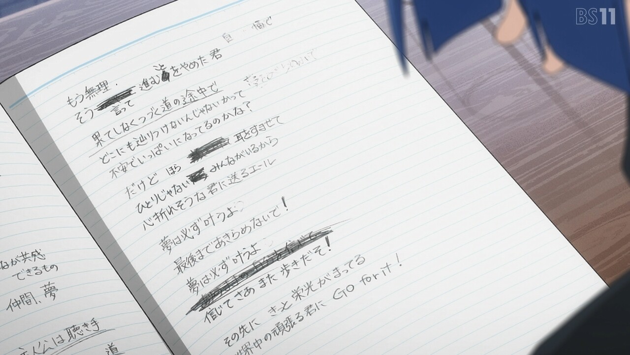 >最初ひとりが作詞した売れ筋に寄せた歌詞というのが、そしてリョウのアドバイスで書き直してひとりらしく暗い、けれど誰かには刺さりそうな歌詞というのがそれぞれどのようなものであったか気になりそうでした。