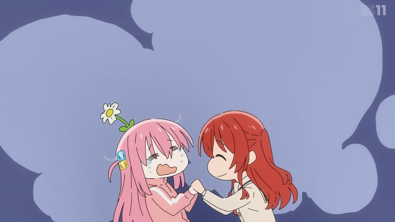 ライブハウスではスタッフとして有能さを発揮するものの、前回ライブをすっぽかした自責の念はそう簡単には解けないところでしたが、ぼっちが指の硬さから練習量を察して引き留めるという良い仕事をしてくれました。くわえて虹夏の説得力、そして決定打はリョウの分のノルマを自分が貢ぐ、とのことで加入決定の心地良くて笑える流れでした。