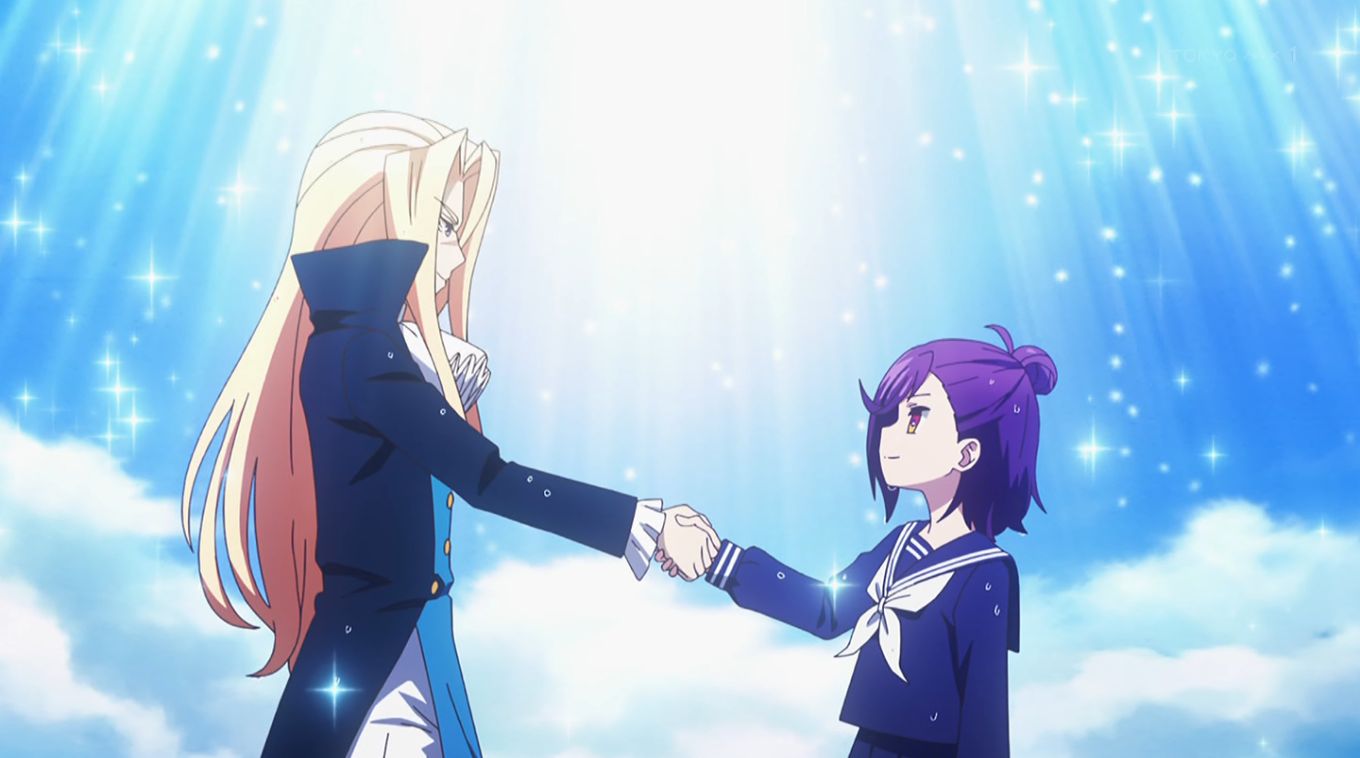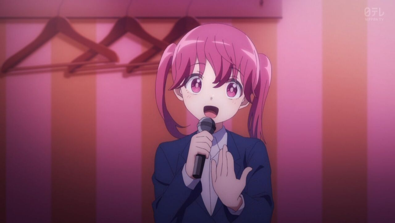 そして、カラオケシーンにけっこう尺を取って歌を聴かせてくれました。今後そんなに聴く機会があるとも思えませんが、よくオリジナル曲を4曲も投入したものでしょうか。特に社長が歌った魔法少女もの「うたうたい天使シンガーシュガー」は、作品そのものもどんななのか、見てみたいです。