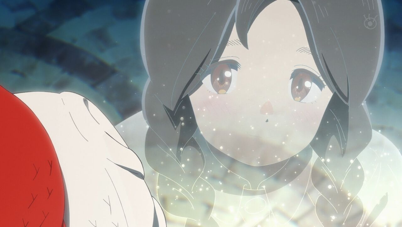 はしゃいでいた望の周囲が急に真っ暗になったのはアニオリですが、これは花火が上がる前の遊園地側の演出だったのか、それとももう地上に居られる限界がきてしまったのか。いずれにせよ望の不安を描いてその後の幸せそうな成仏につなげられて効果的だったかと。雪のような火花が落ちるのを見て、自分の望みが叶うと確信したかのような望の表情も良かったかと。また消える寸前、原作ではあたるの腕をつかんで至福の微笑みを浮かべていましたが、本作ではあたるの方を向いて何かを口にしていて、これはこれで良い情感を出してくれたでしょうか。