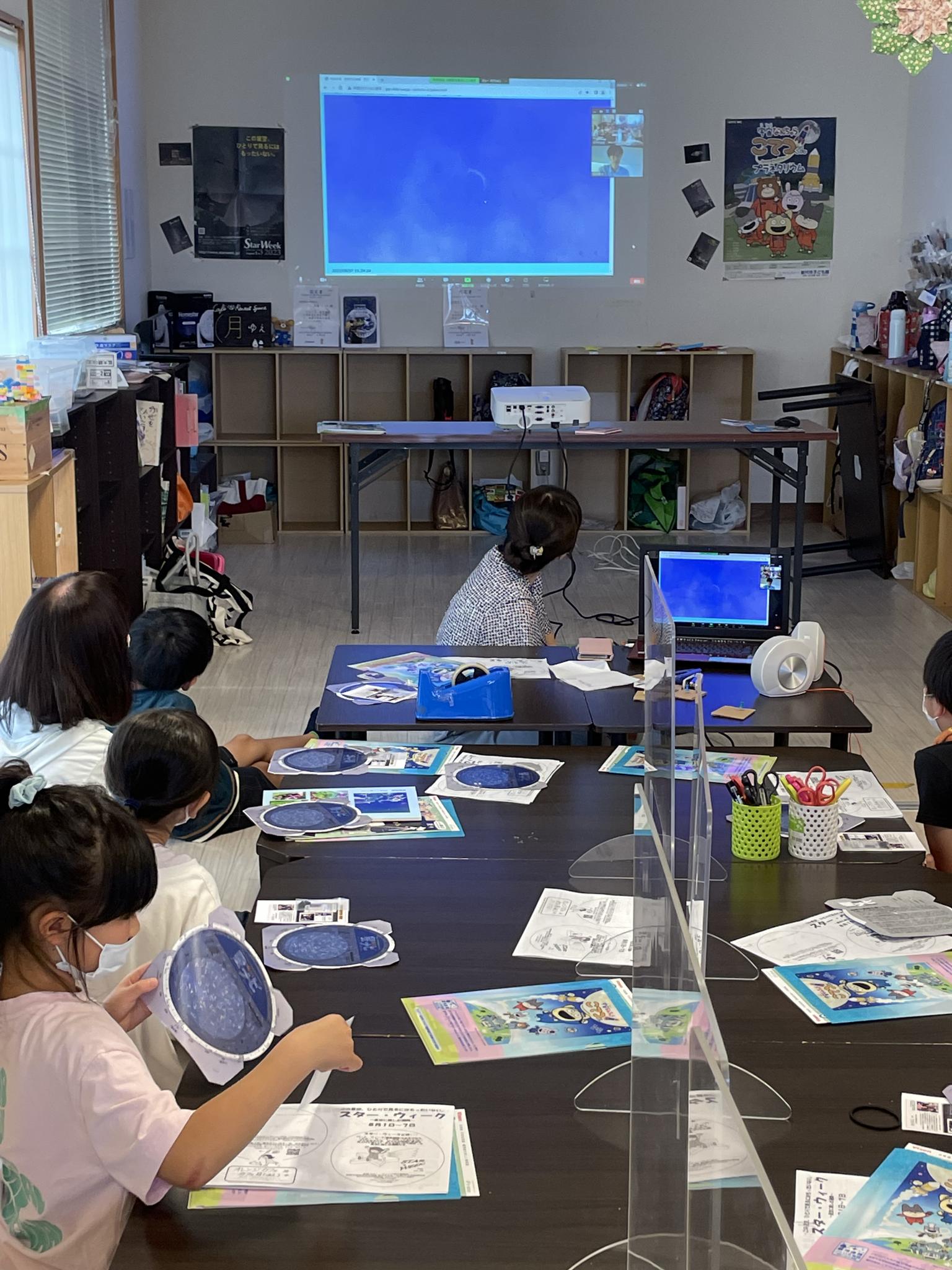 星座早見盤を作りさやママから解説していただき、秋田大天文台オンライン中継で昼の欠けた金星を皆で観ました。子供達は興味深々、楽しんでもらえました🌟