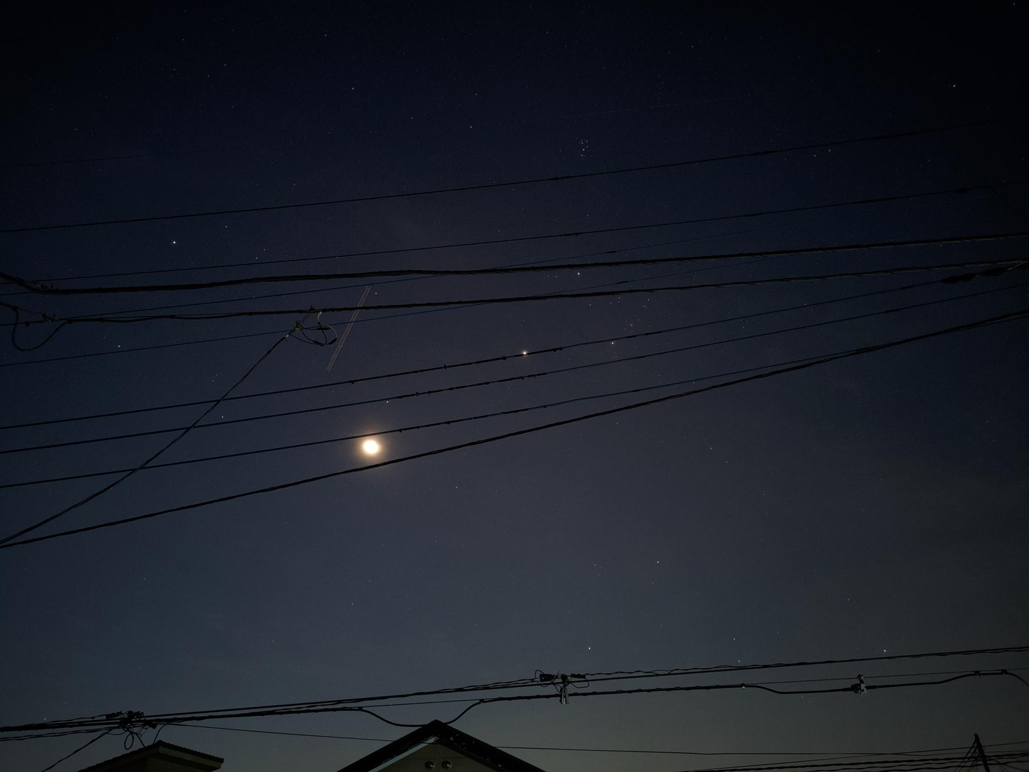 寝苦しくて起きてしまい、ふと東の空を見上げたら、とっても賑やかだったので、スマホで撮りました!