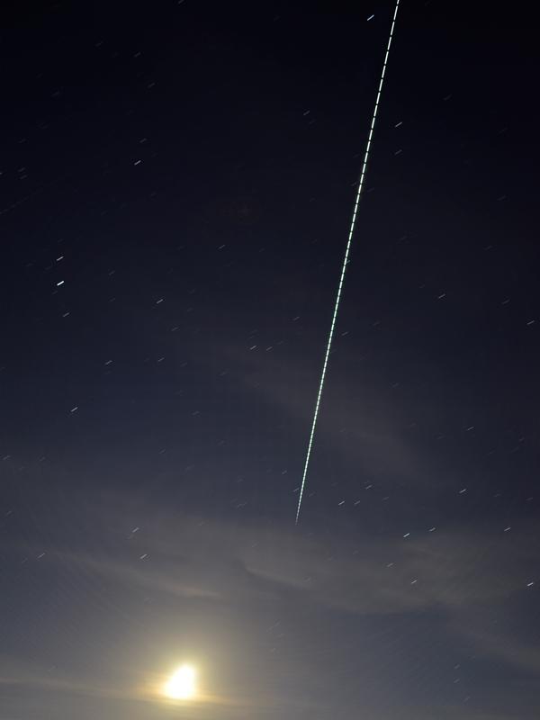 初めて見たスターリンク衛星、圧巻の大行列でした!その10分後には光り輝くISSの通過。東の空からは昇ってきた真ん丸お月様。なんとも贅沢なひとときでした✨
