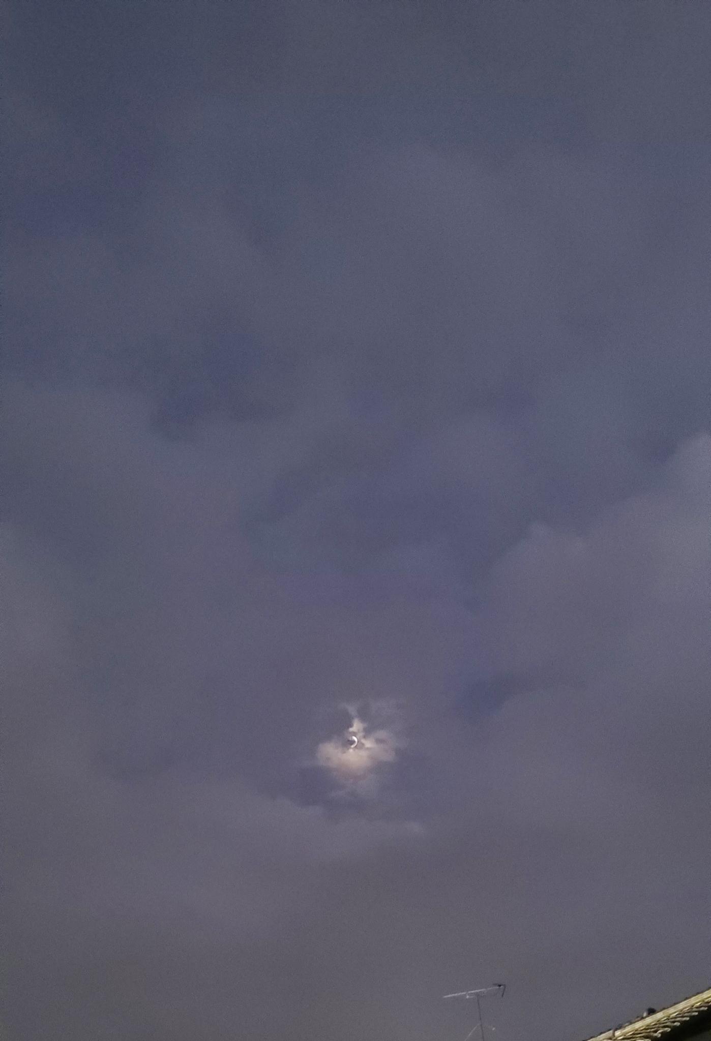 只今の天候は、ほぼ全天曇りですが、月がかすかにみえてます。