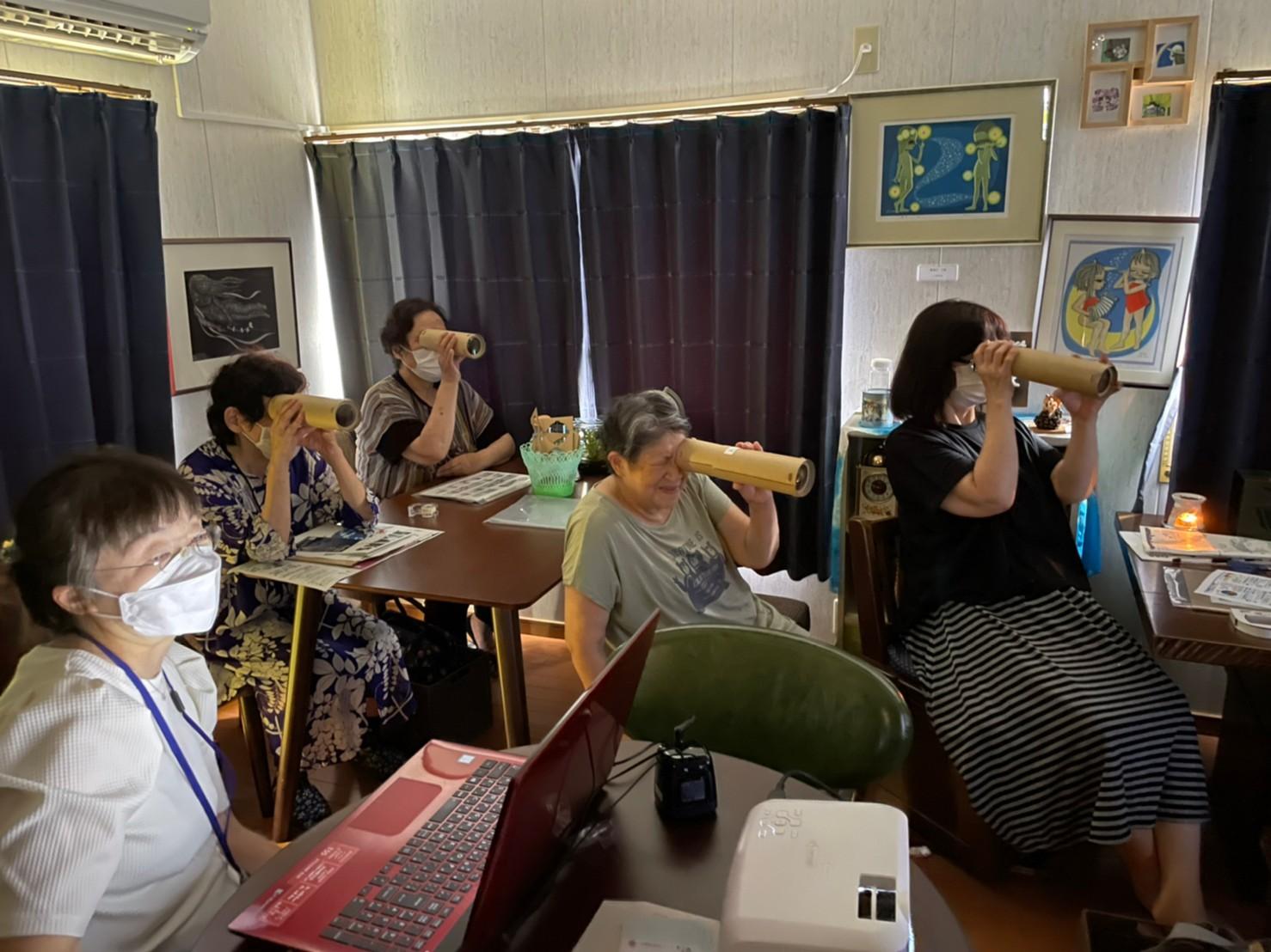 オレンジカフェ(高齢者さんが集うカフェ)で、手作り望遠鏡を作って、月を見ました❗️楽しい時間でした❗️
